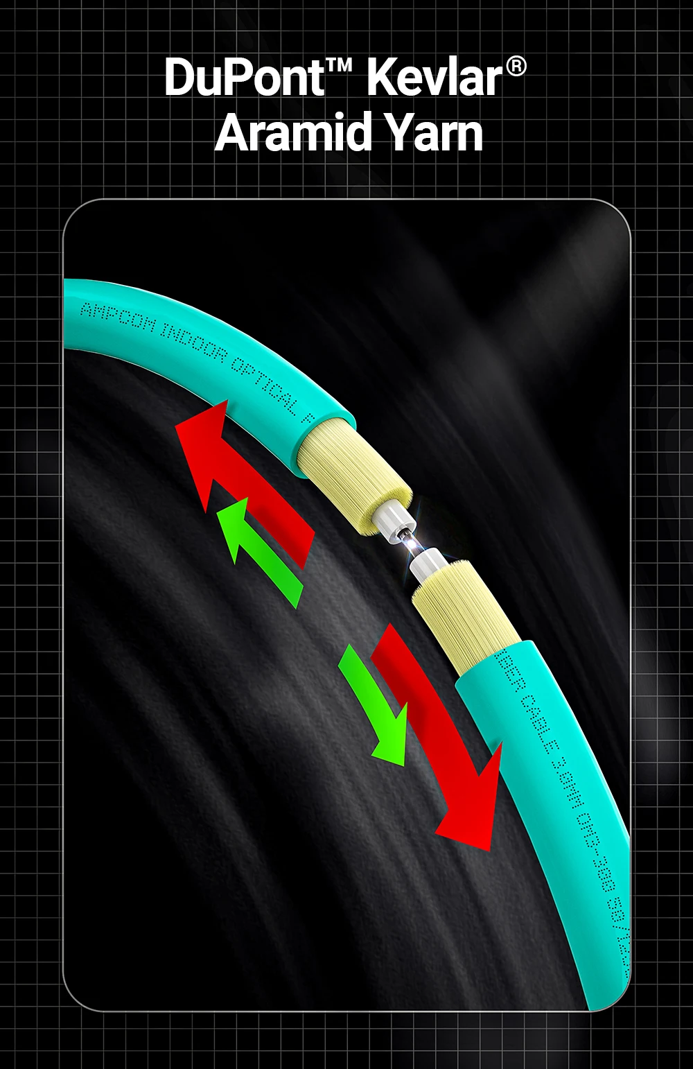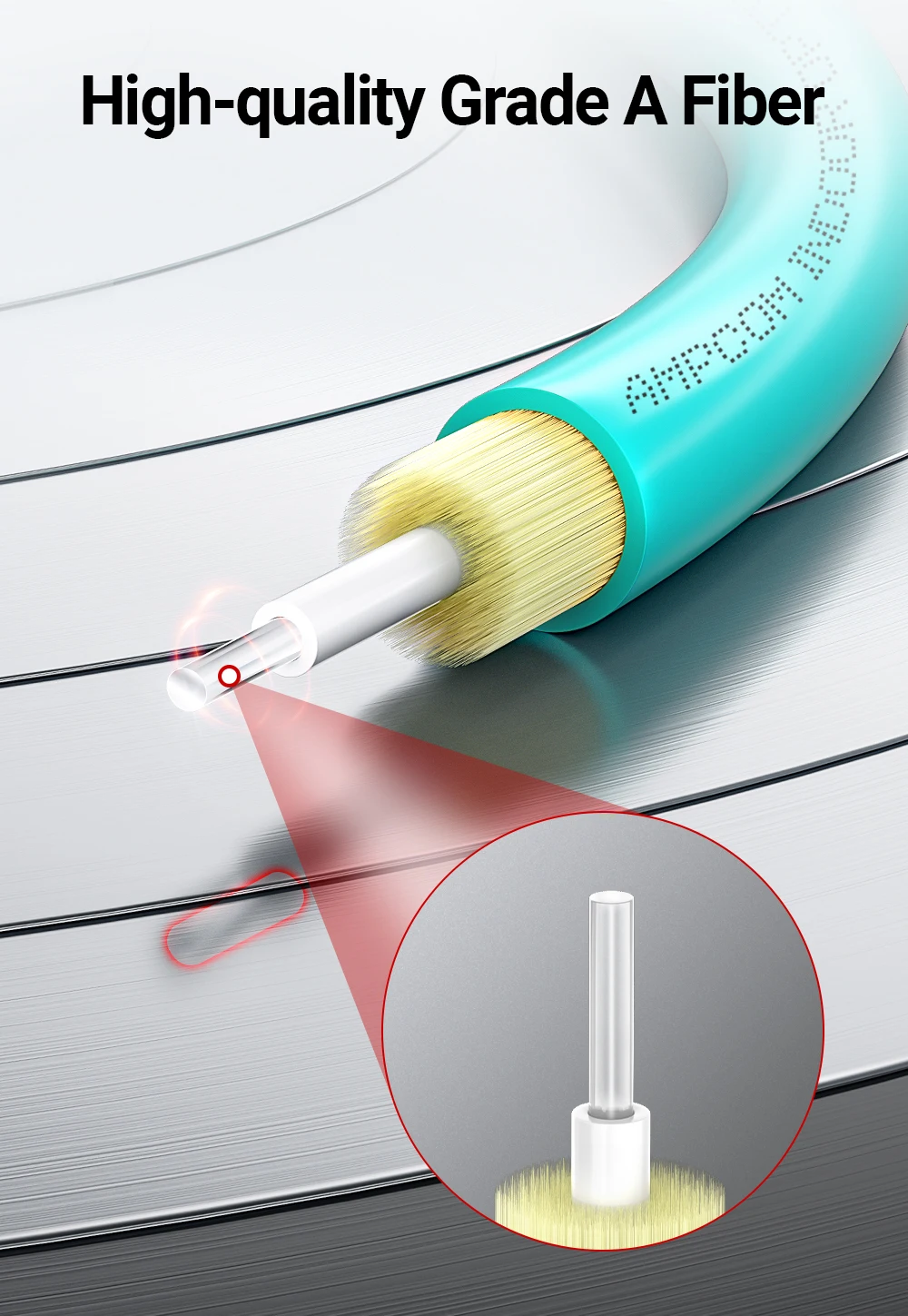 AMPCOM-Cable de conexión de fibra óptica dúplex OM3 10Gbps MMF 50/125μm