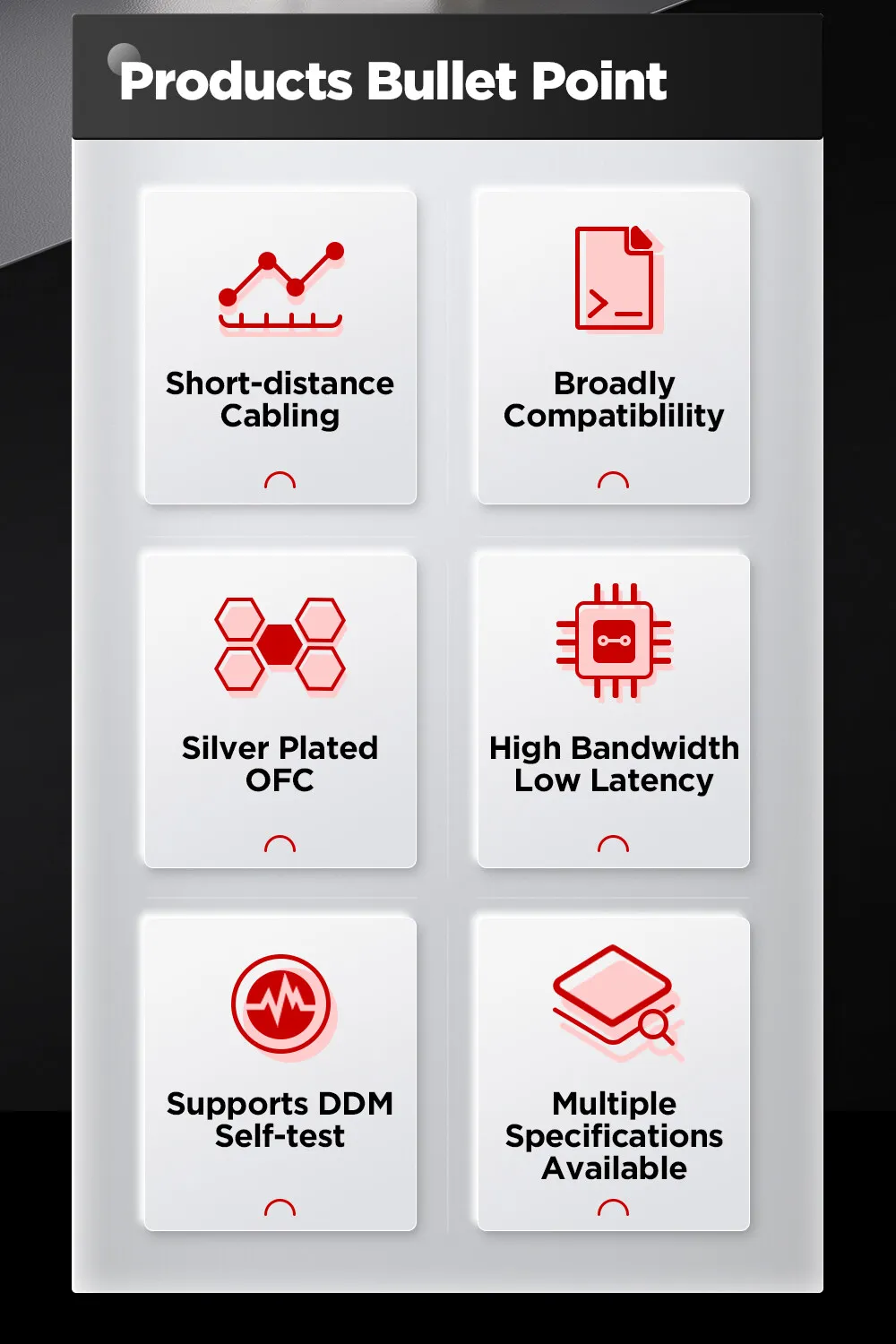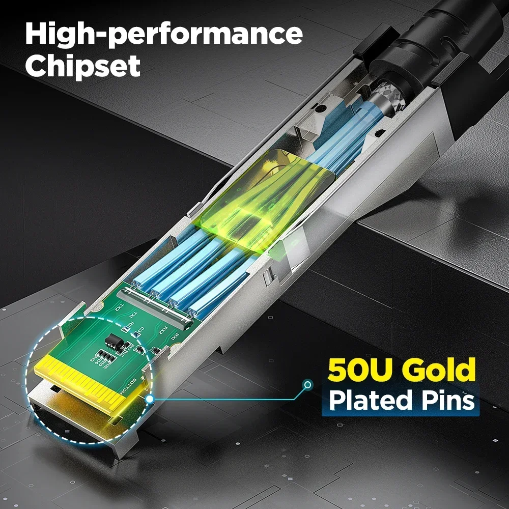 No se necesita Conversión de señal, cable de cobre DAC, no se necesita fuente de alimentación, consumo de energía casi nulo.