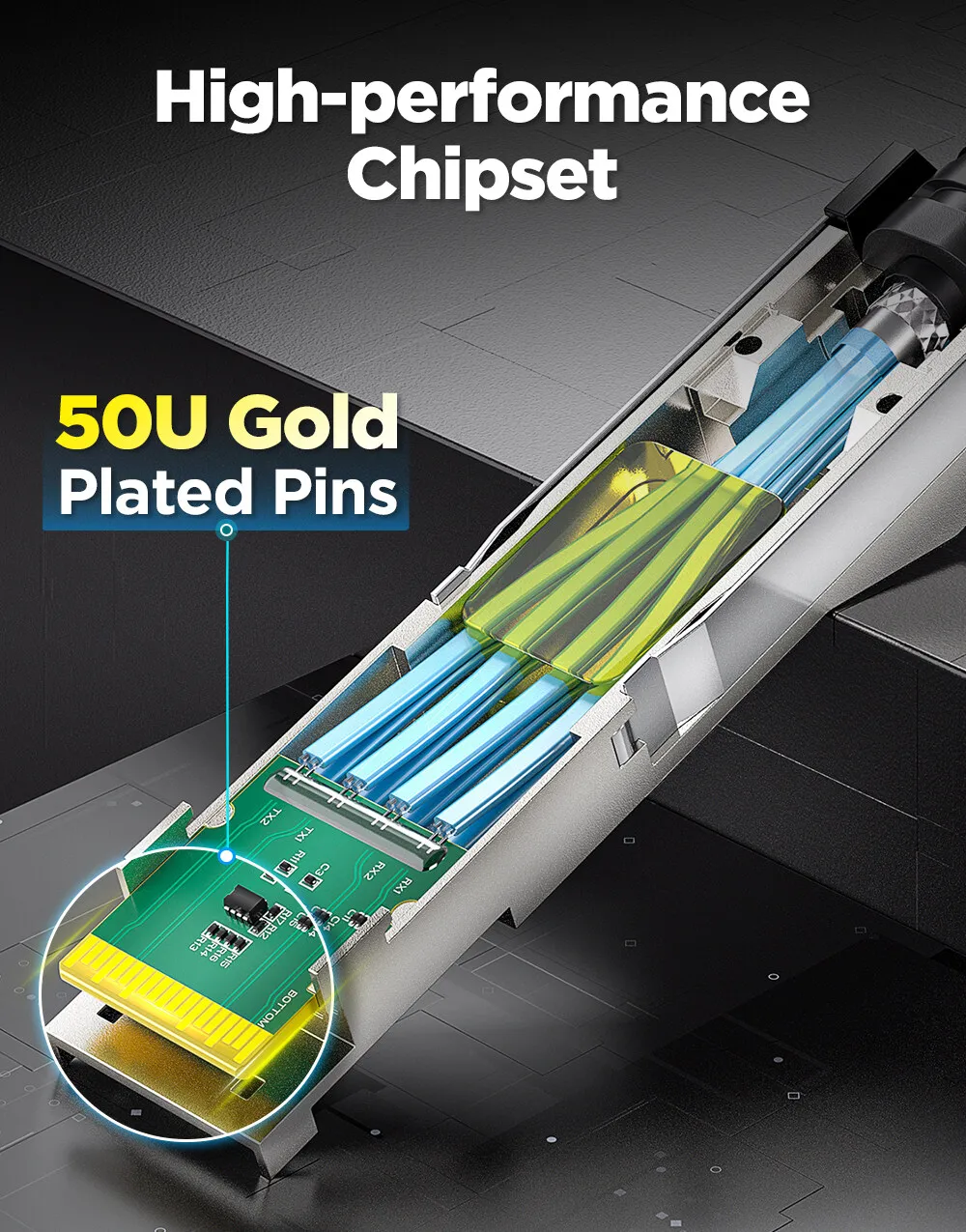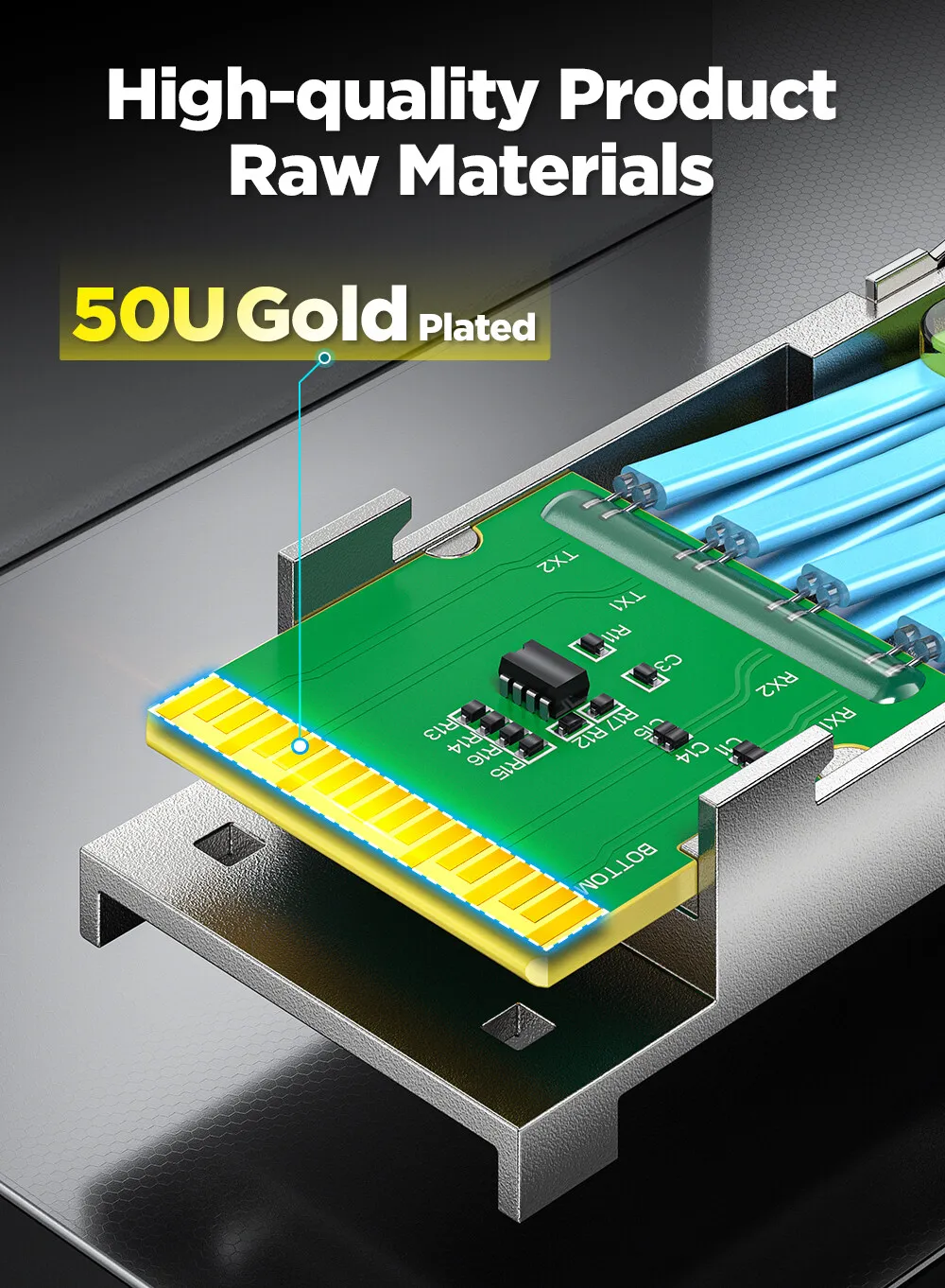 La carcasa está hecha de aleación de zinc de alta calidad para un blindaje electromagnético efectivo. La placa PCB es gruesa y Multicapa, lo que garantiza una alta calidad. Los conectores utilizan chapado en oro grueso de 50U de alta calidad para una transmisión estable.