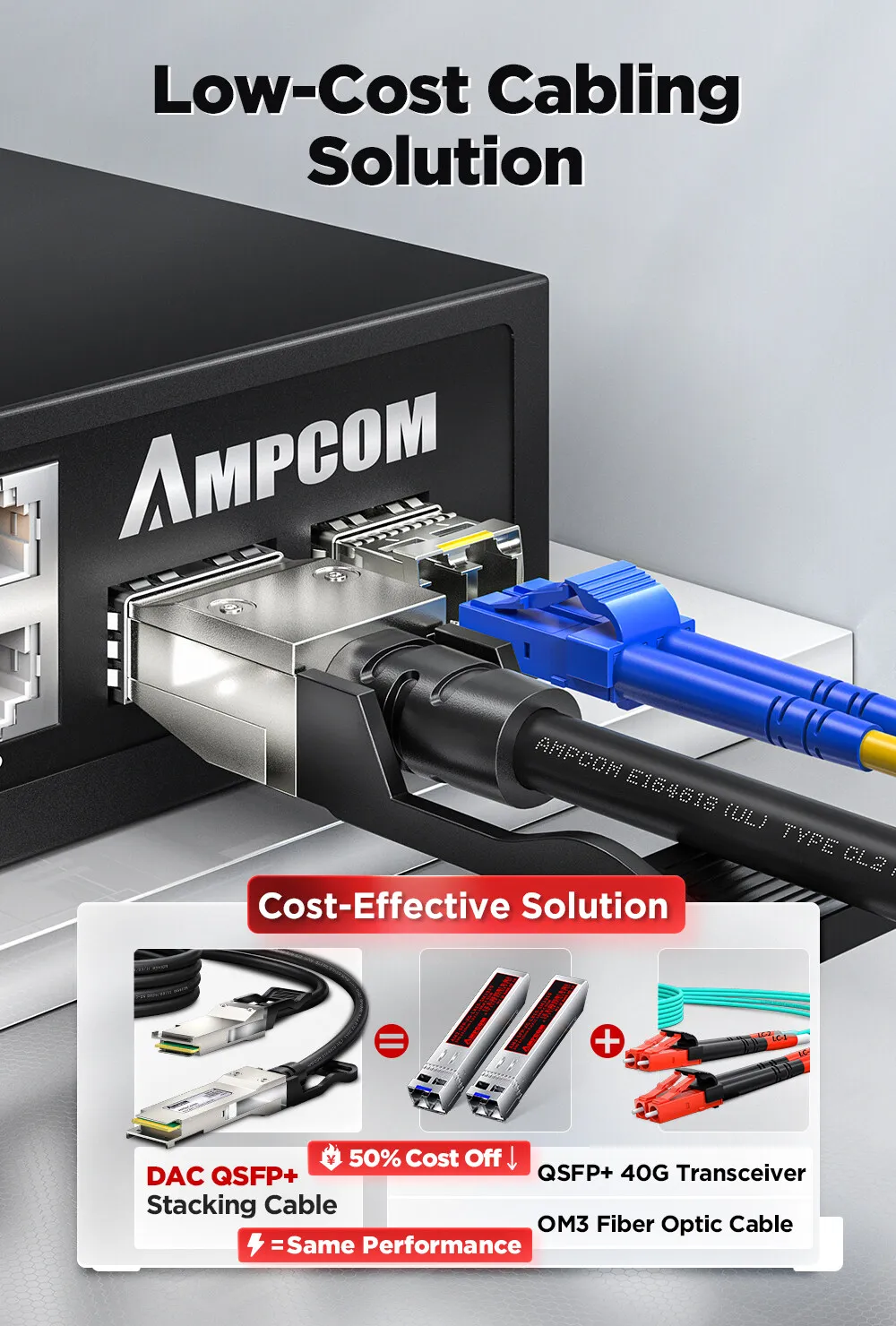 La transmisión directa 40G-40G, que utiliza cables especializados para el apilamiento de interruptores, permite una solución de bajo costo para la transmisión de alta velocidad 40G en distancias cortas entre dispositivos.