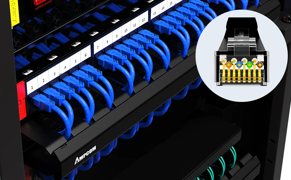 Los conectores CAT6 escalonan los pines un poco, para acomodar el grosor del cable AMPCOM CAT6.