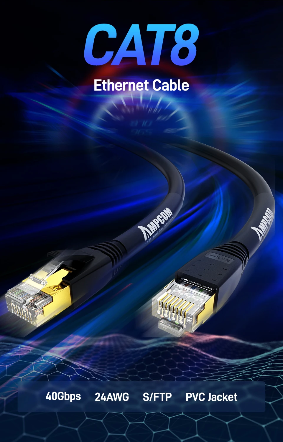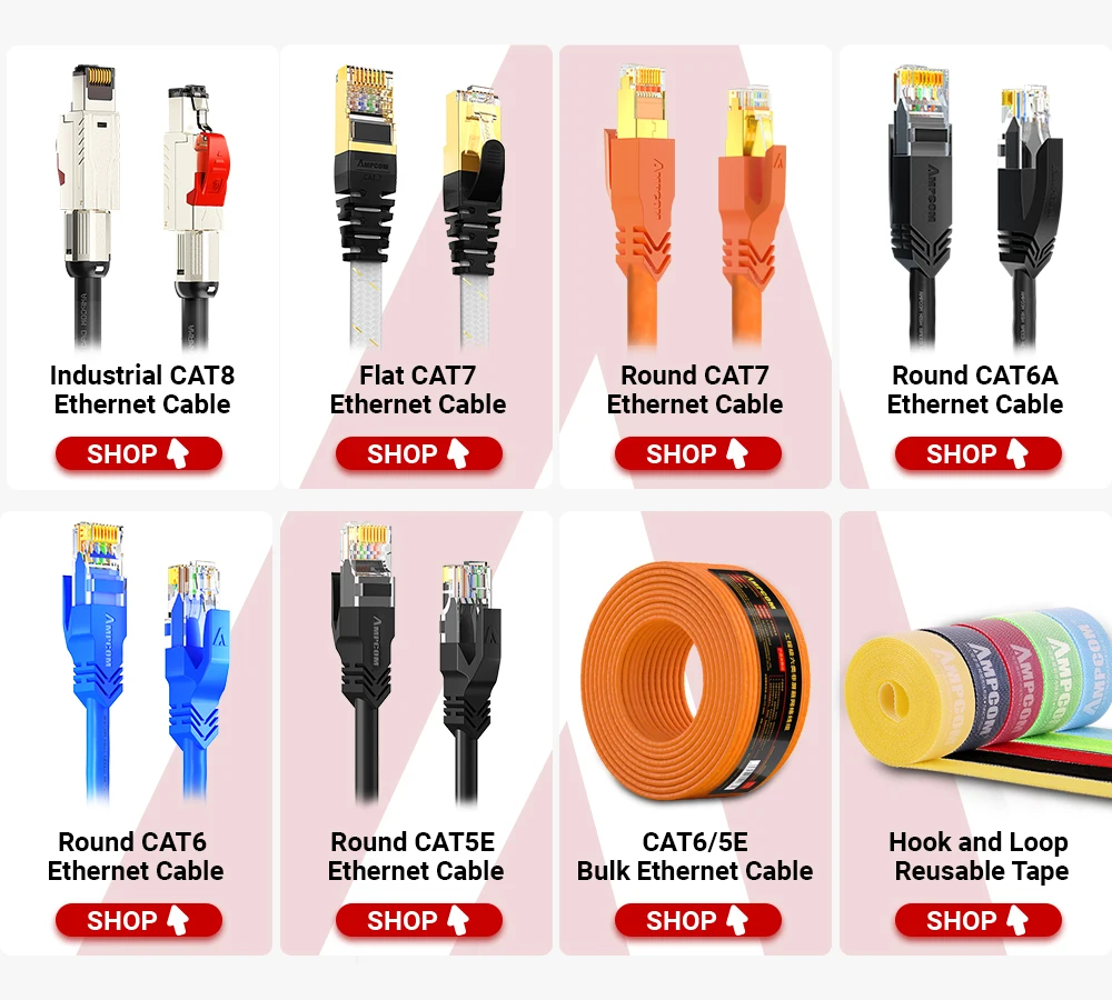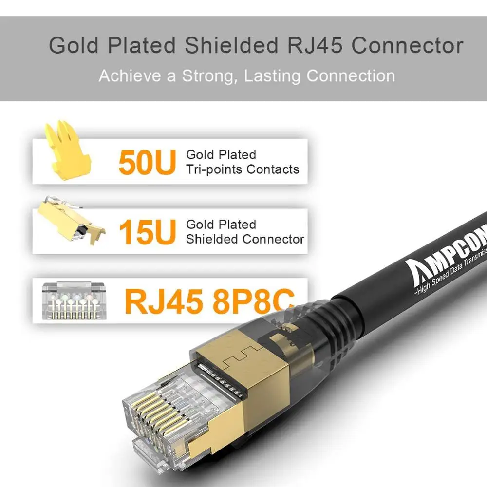 Comprar AMPCOM-Cable Ethernet S/FTP CAT8 de alta velocidad, Cable de parche de 24AWG, 40Gbps, 2000Mhz, conector RJ45 chapado en oro para interior/exterior