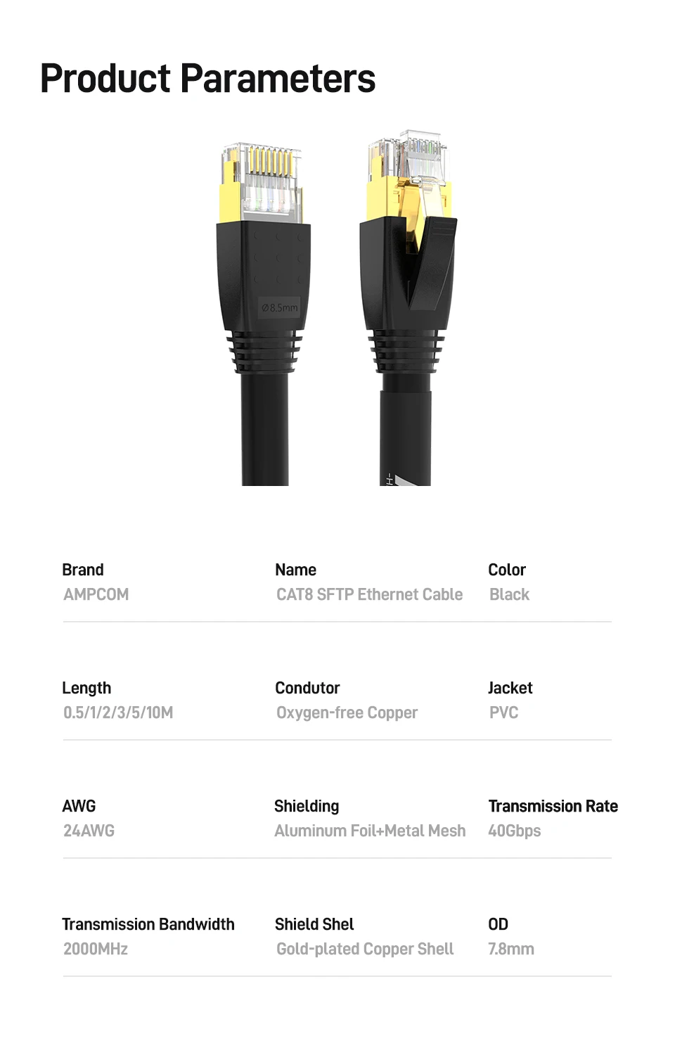 •[High Compatibility] Backwards compatible to Cat 7A, Cat 7, Cat 6A, Cat 6 and Cat 5e cabling products. The Cat8 ethernet is advantageously in TCP/IP and UDP application where correct data information is critical, e.g. 4K and 8K video streaming, high quality music streaming, gaming, data centers and in-building installations