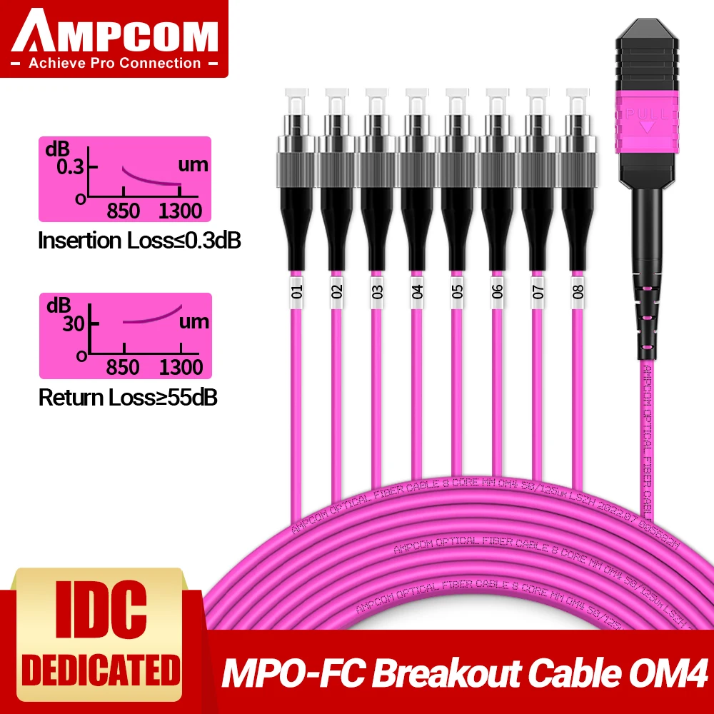 Comprar AMPCOM Cable de fibra óptica MPO a FC, Cable de fibra óptica multimodo OM4, chaqueta LSZH hembra a Cables de fibra óptica FC UPC