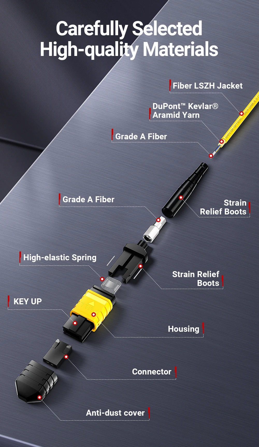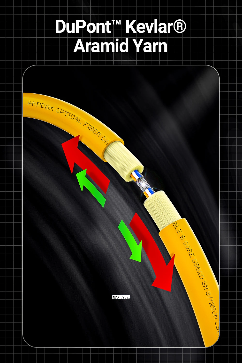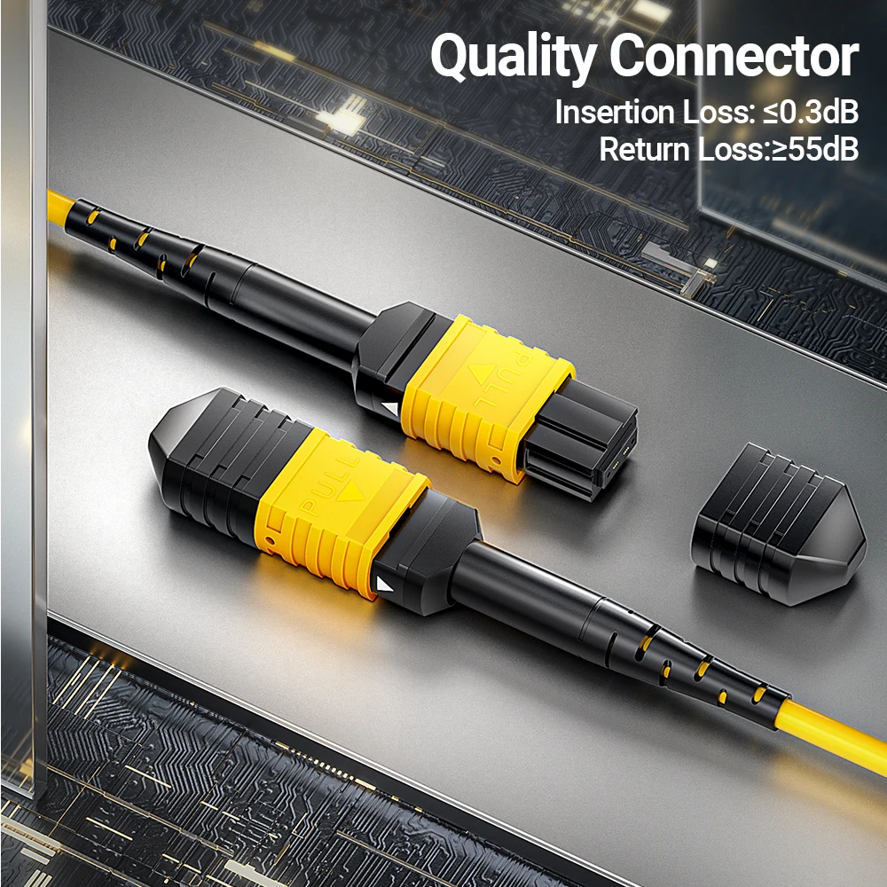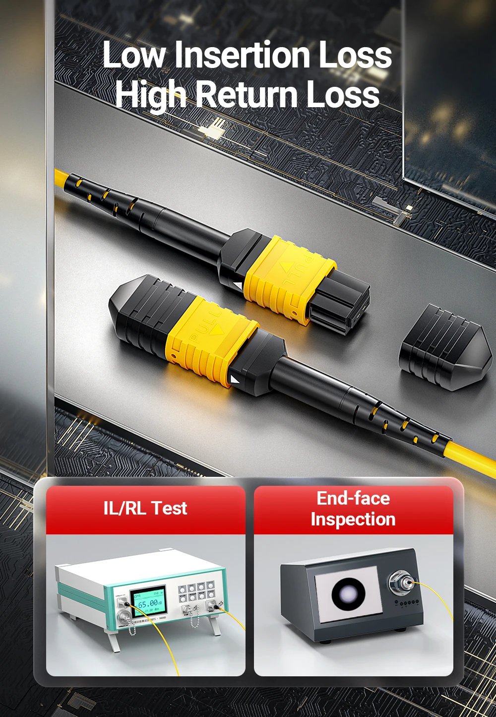 Pérdidas de inserción bajas Pérdidas de alto retorno/Pérdidas de inserción bajas/Para centro de datos IDC/Fibra de aramida KEVLSR®/Cable de fibra de grado A/Probado por LAB de terceros