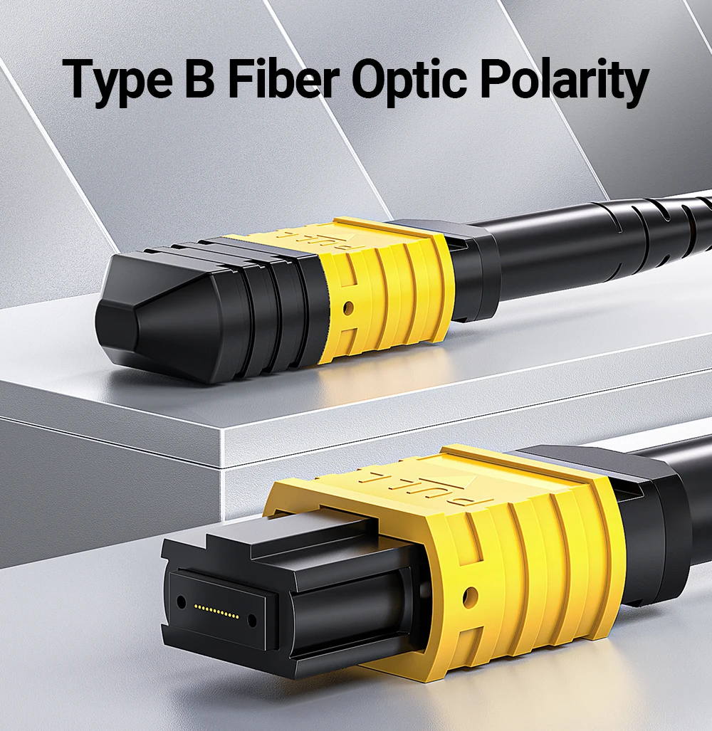 Cable troncal de fibra óptica AMPCOM 1Gb 9/125 monomodo OS1/OS2 MPO (8,12,24 fibra, MPO a MPO hembra, tipo B, LSZH, UPC, amarillo)