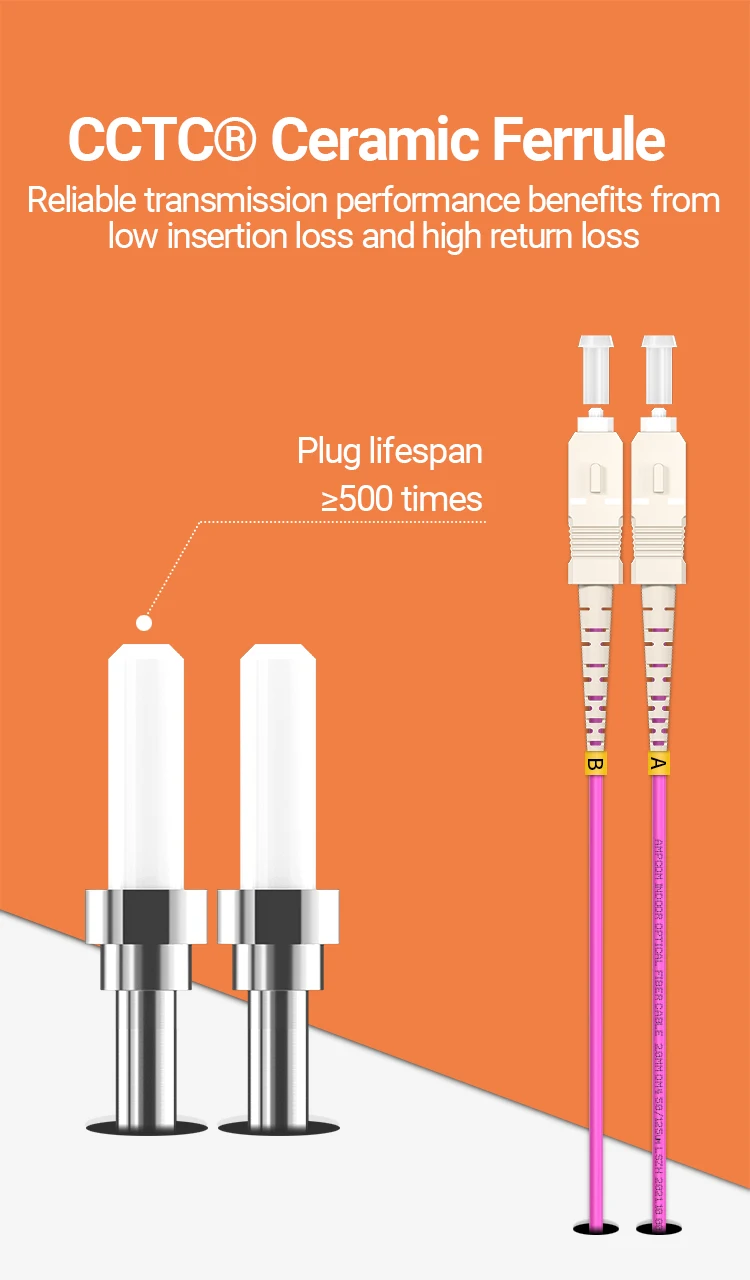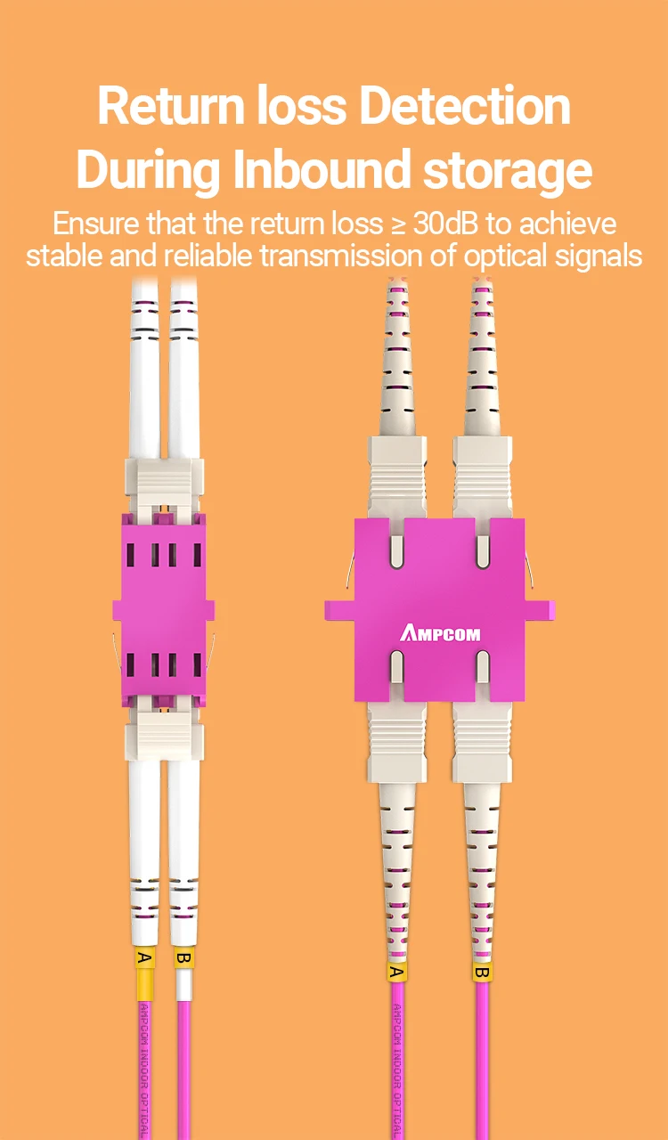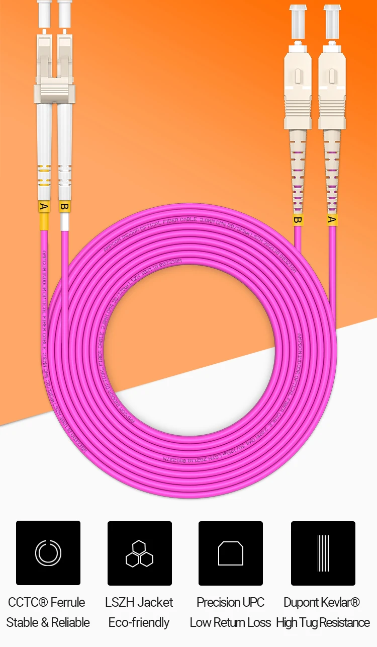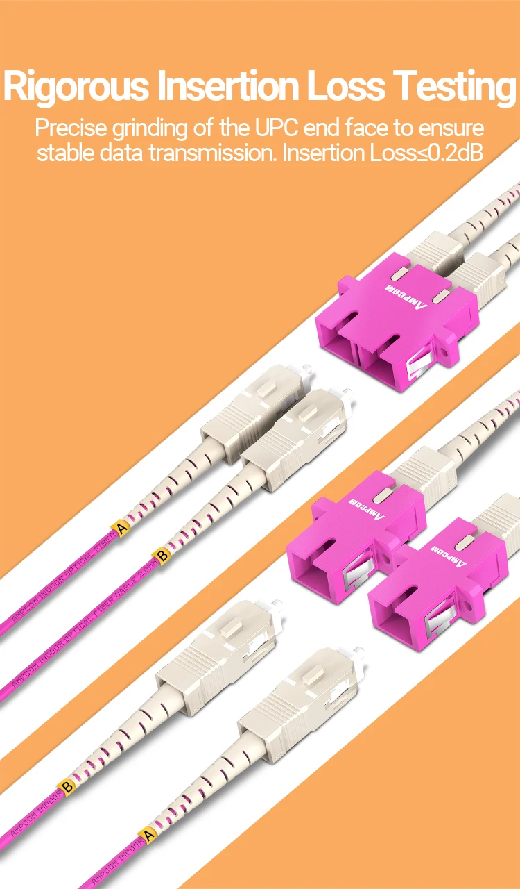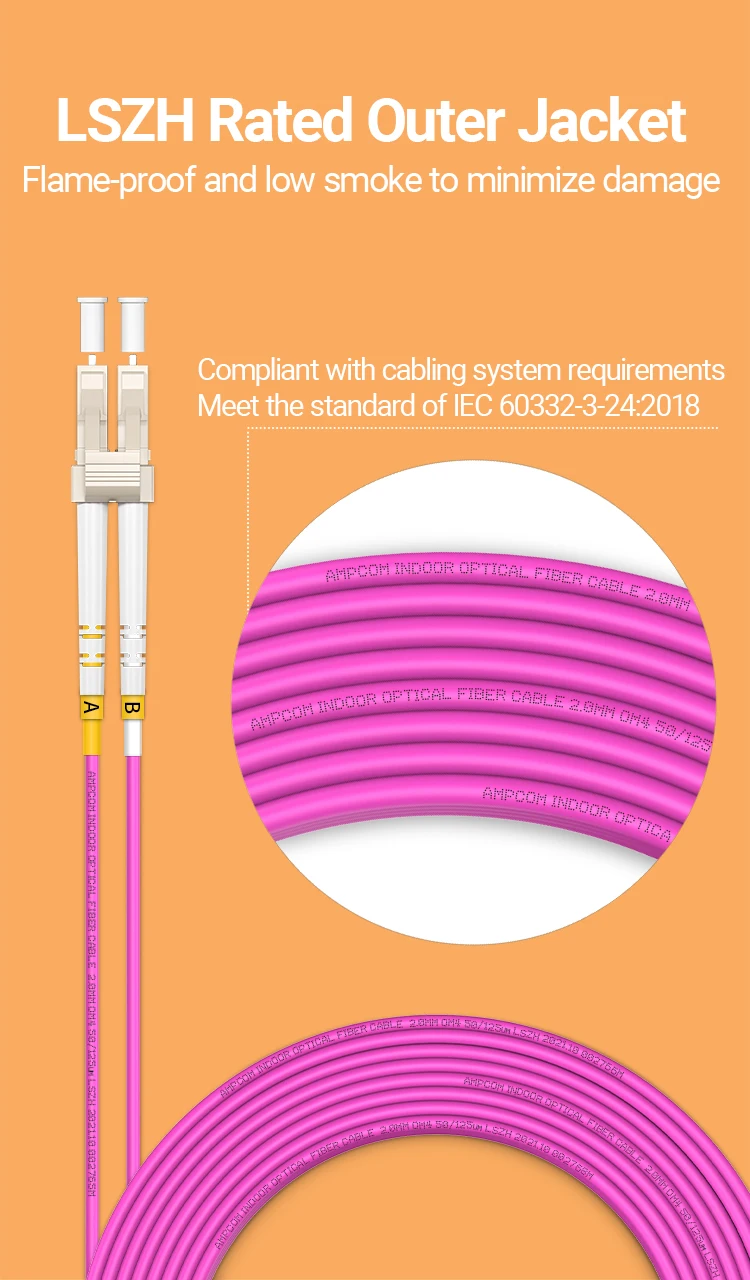 Cable de conexión de fibra óptica dúplex AMPCOM, OM4, 40Gbps, MMF, 50/125μm