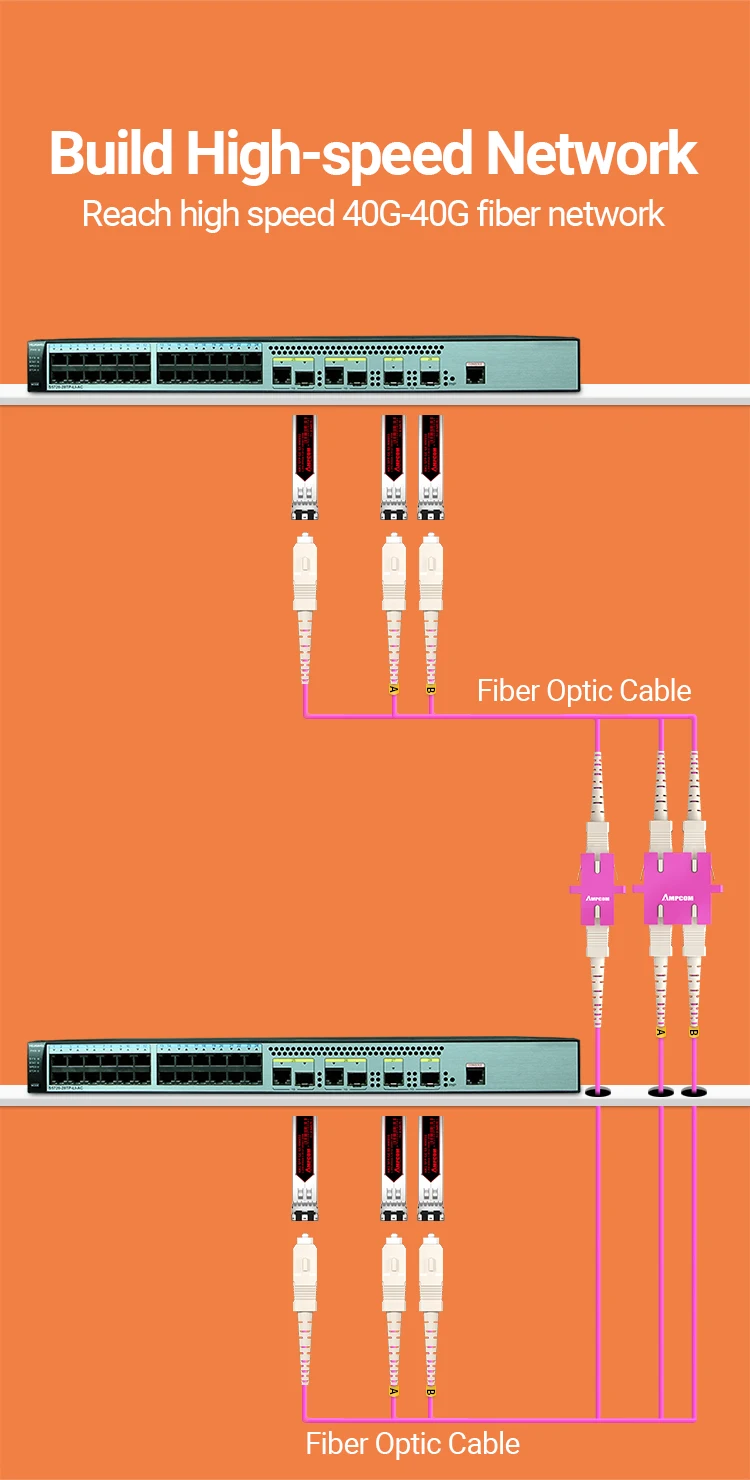 Este cable de fibra óptica multimodo 50/125 OM4 es ideal para conectar 40G BIDI SR, 10G SR, QSFP +, transceptores SFP +, para conexiones Ethernet etc. 10/40/100G y es la especificación de fibra preferida para aplicaciones 40/100G.