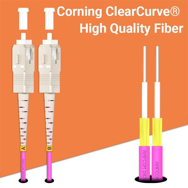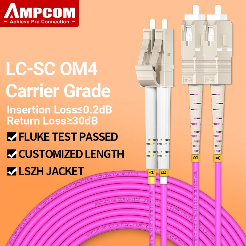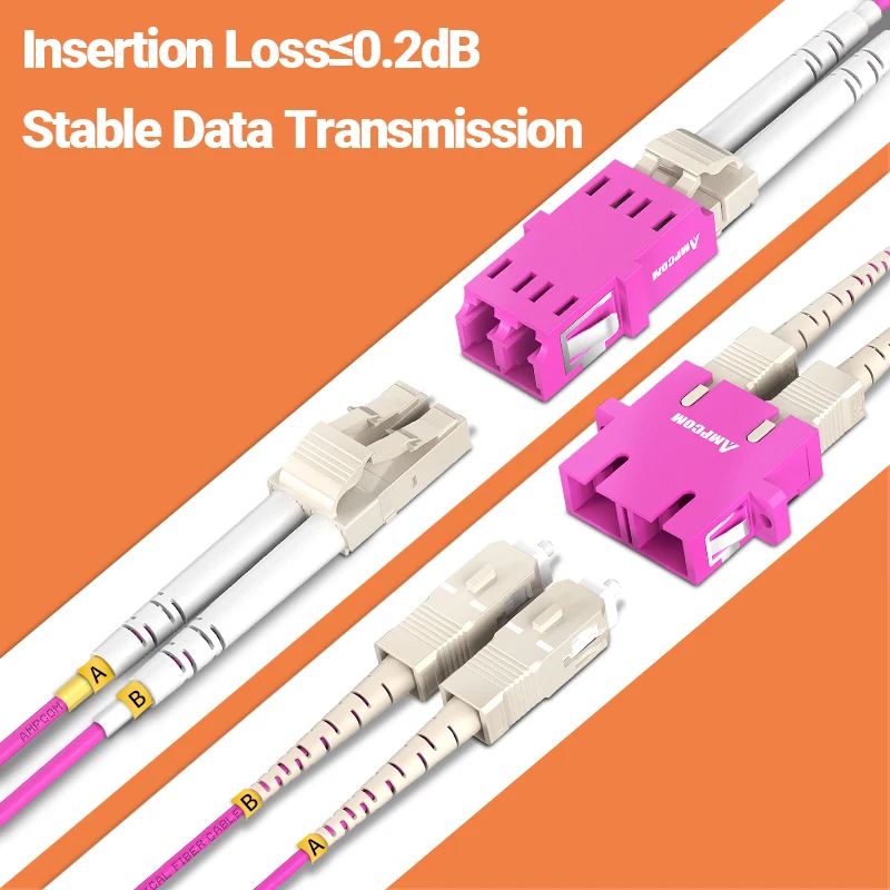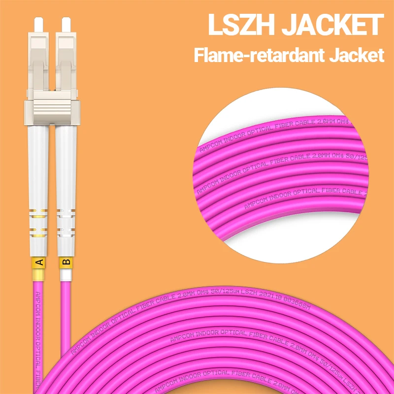 Cable de conexión de fibra óptica dúplex AMPCOM, OM4, 40Gbps, MMF, 50/125μm