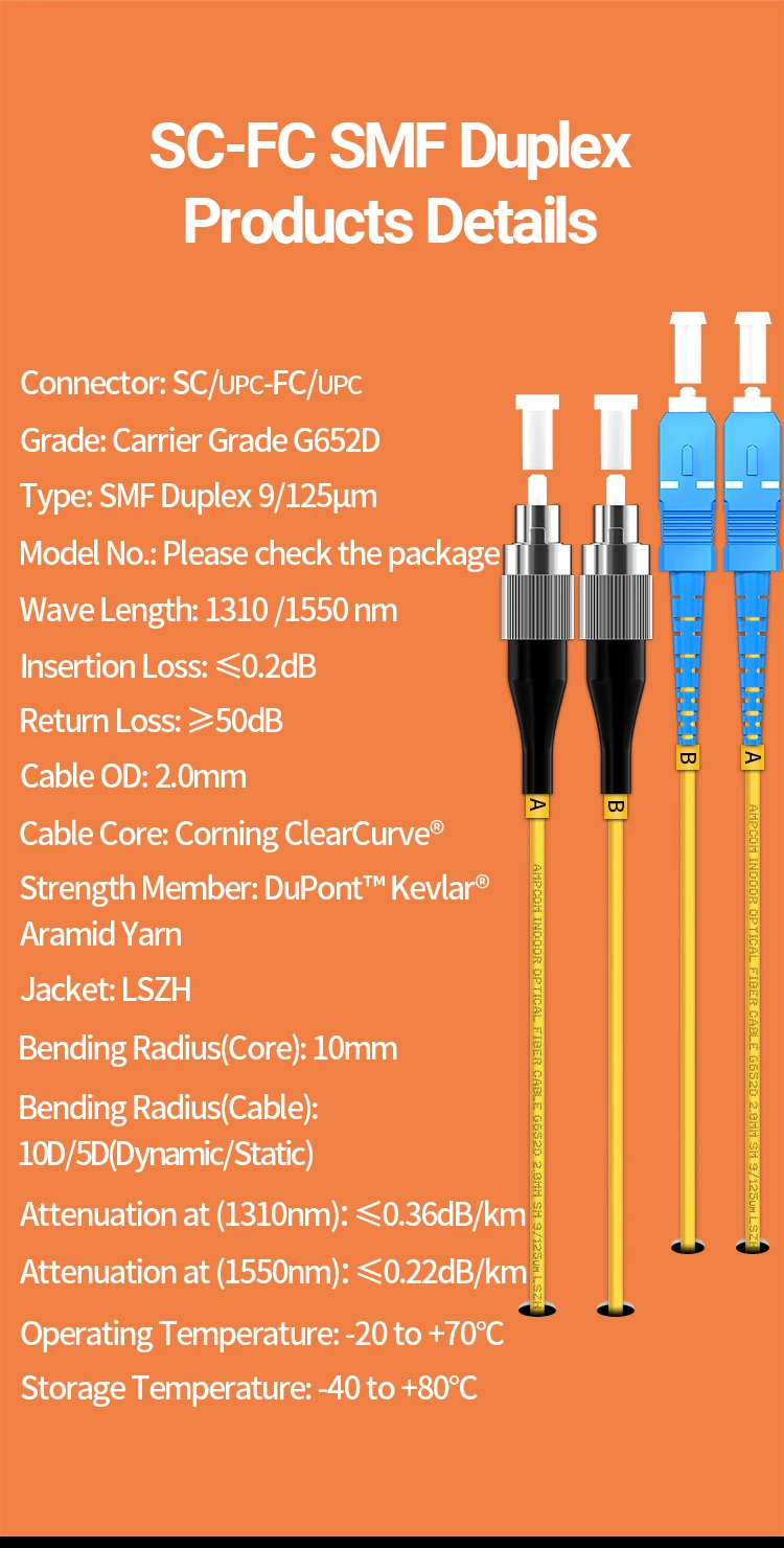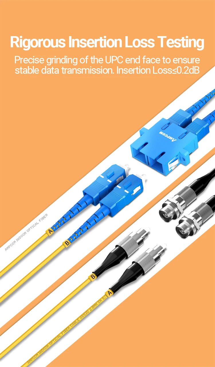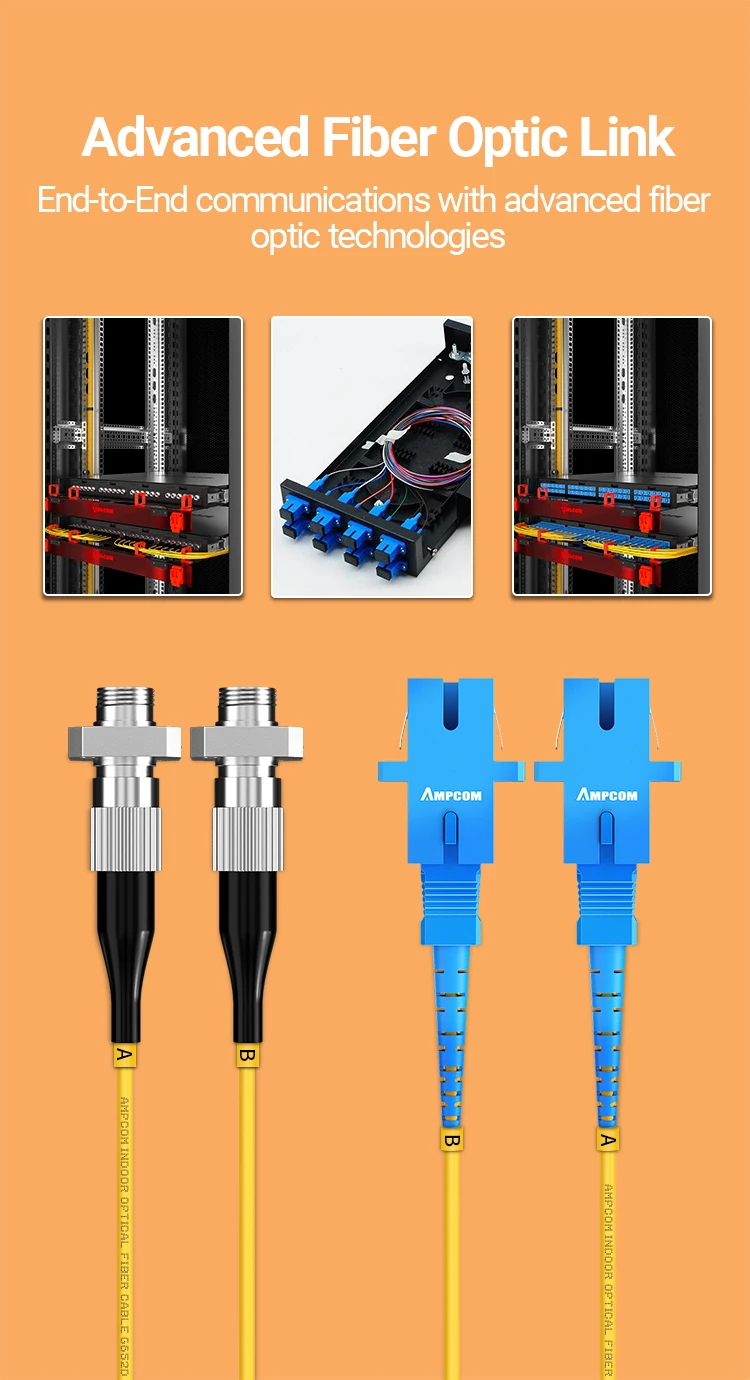 AMPCOM SC- FC SMF/9/125μm dúplex de fibra óptica Cable de parche