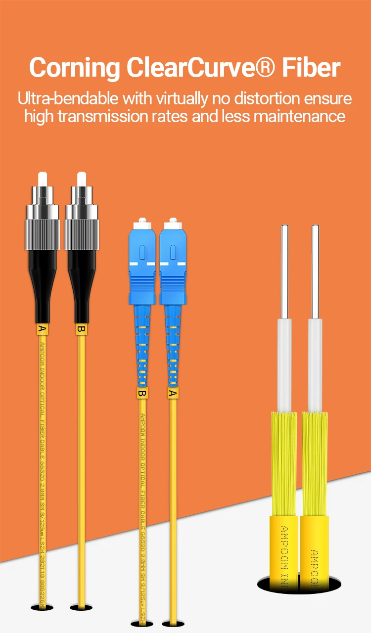 El 9/125μm OS2 único modo curva insensible cable de fibra óptica es menos atenuación cuando doblado o retorcido en comparación con con la tradicional de los cables de fibra óptica y esto hará que la instalación y el mantenimiento de los cables de fibra óptica más eficiente ¡! También puede ahorrar más espacio para su alta densidad de cableado en centros de datos de empresa de las redes telecom habitación granjas de servidores de nube redes de almacenamiento y cualquier lugares de parche de fibra cables son necesarios