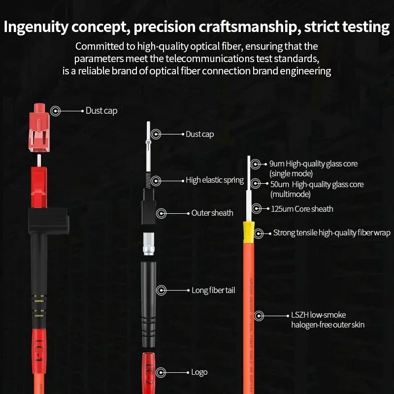 Este Cable de conexión de fibra LC de fibra cumple con los estándares TIA/EIA 492AAAA y A1b y cumple con las especificaciones RoHS.