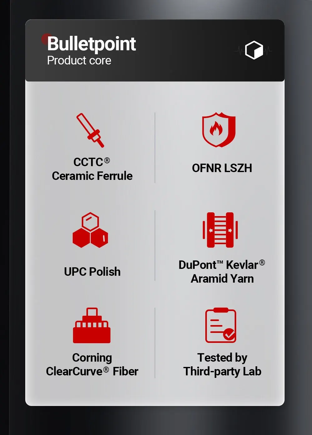 Protege el núcleo de la fibra y facilita la transmisión de señales ópticas, exhibiendo excelente resistencia a la tracción y resistencia a la flexión.