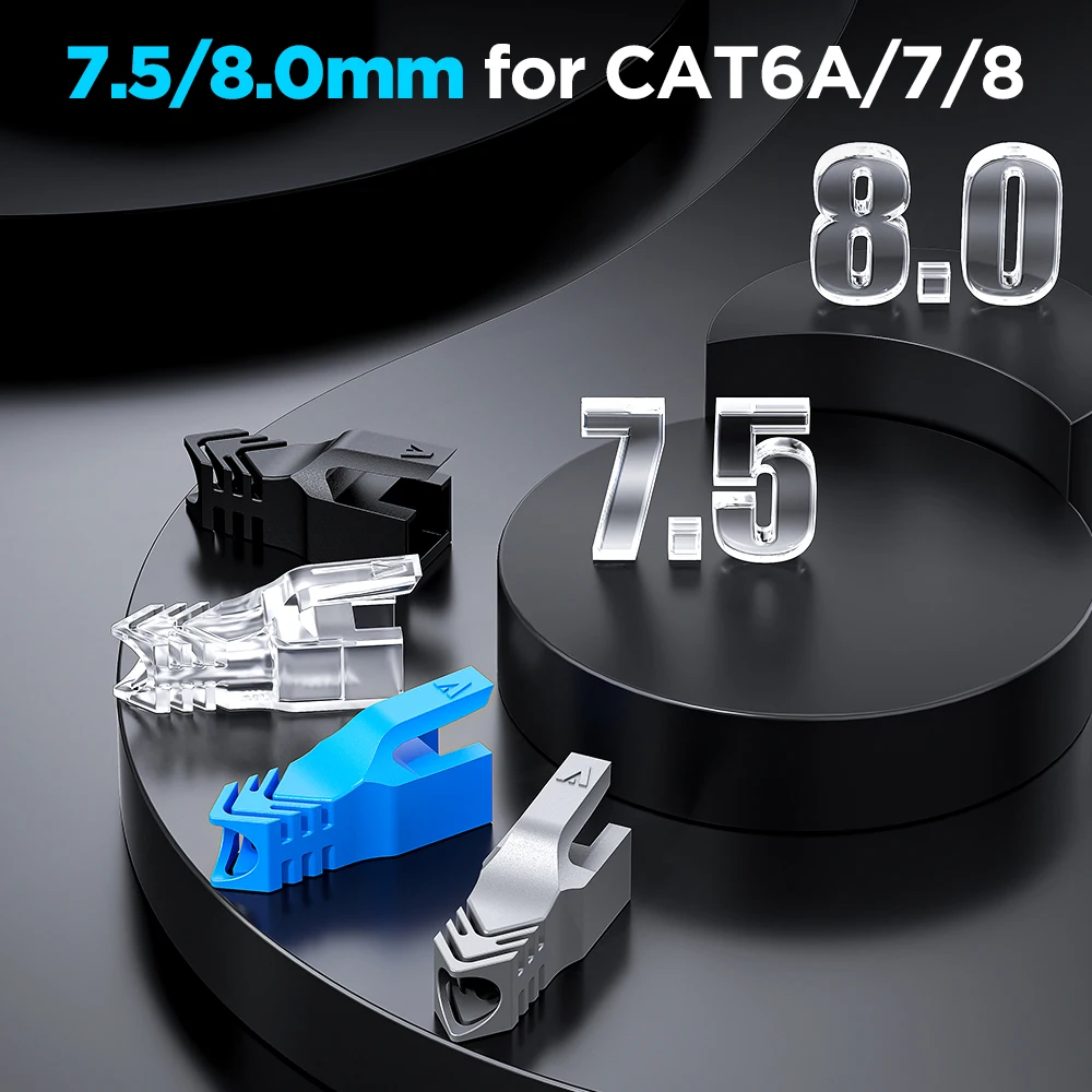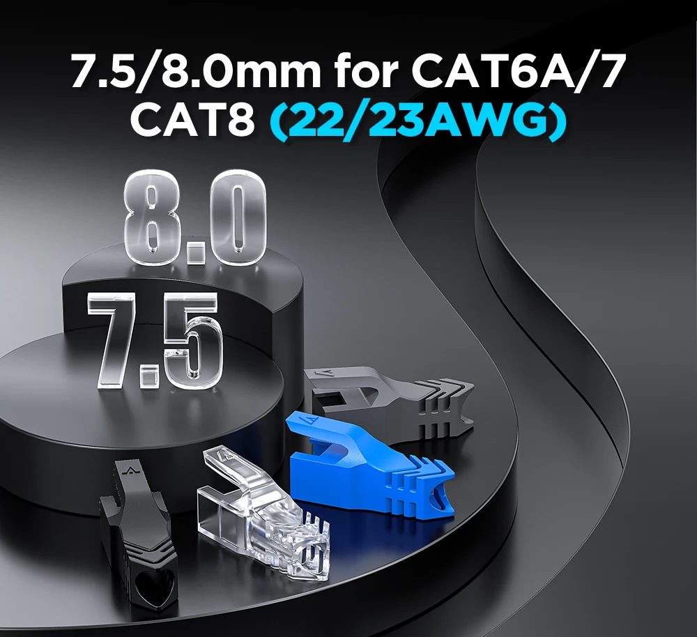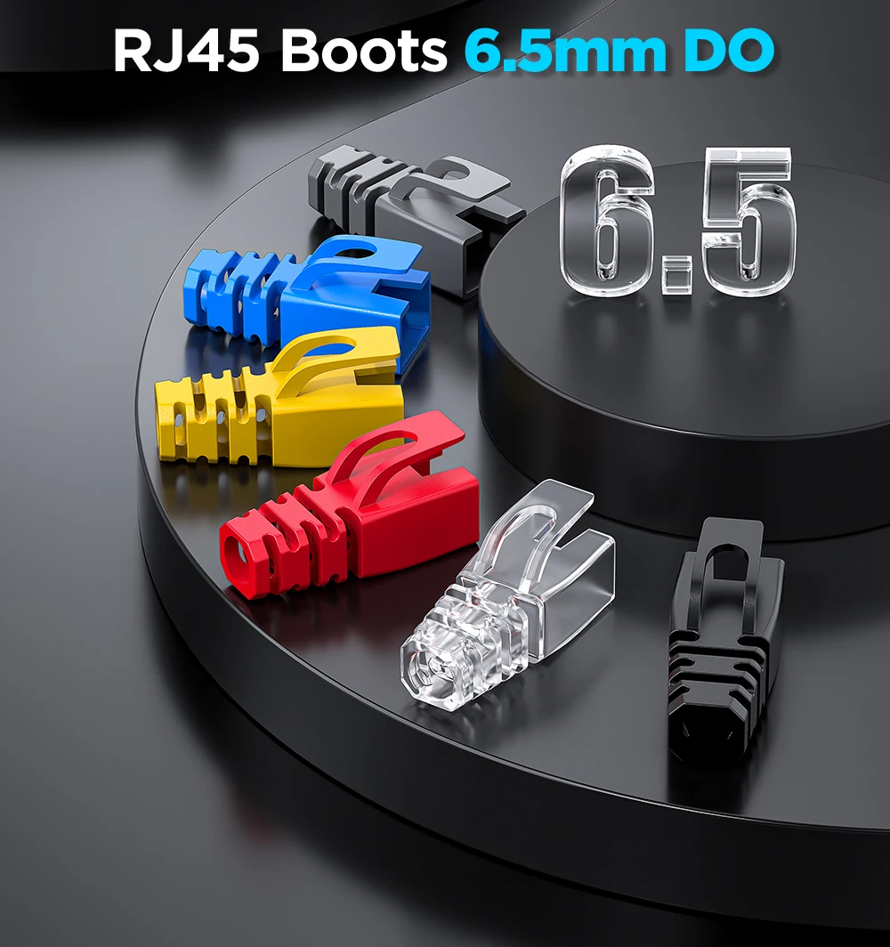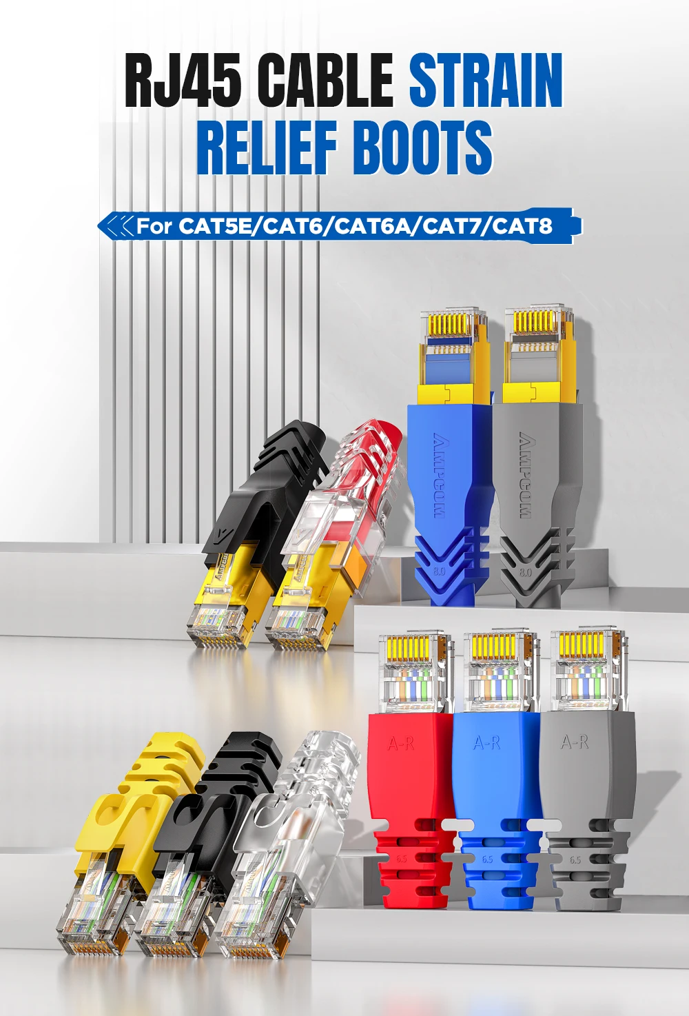 Ampcom es una marca de red premium que no cuesta mucho dinero. Incluso estas botas RJ45 son de plástico grueso, de primera calidad, de marca y con un diseño increíble. Hará que tus cables luzcan mucho mejor. Asegúrese de realizar una prueba de espesor en el diámetro exterior del total de mm de su cable para asegurarse de que encajen y no se pierdan. Quieres una diferencia PLUS de 0,1 mm a 0,3 mm en el maletero.