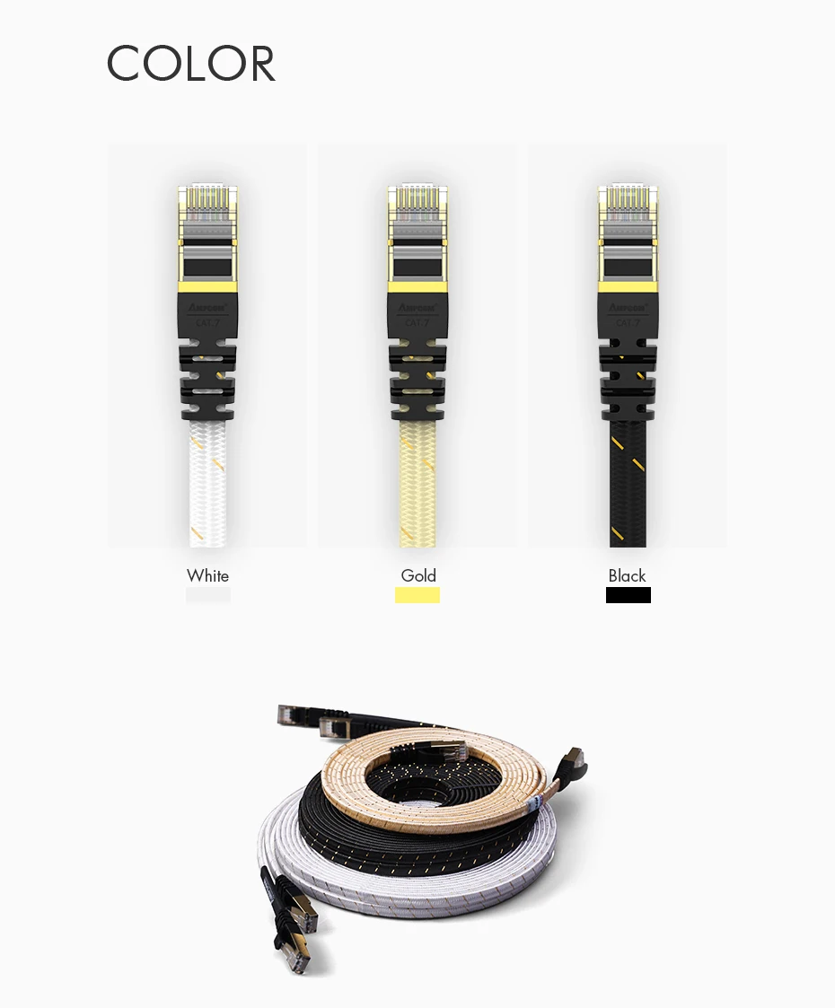 Comprar AMPCOM-Cable de red plano Delgado trenzado RJ45 Cat7/ 6A, Cable Lan STP RJ 45, Cable de parche Ethernet para computadora, enrutador, interruptor, PC