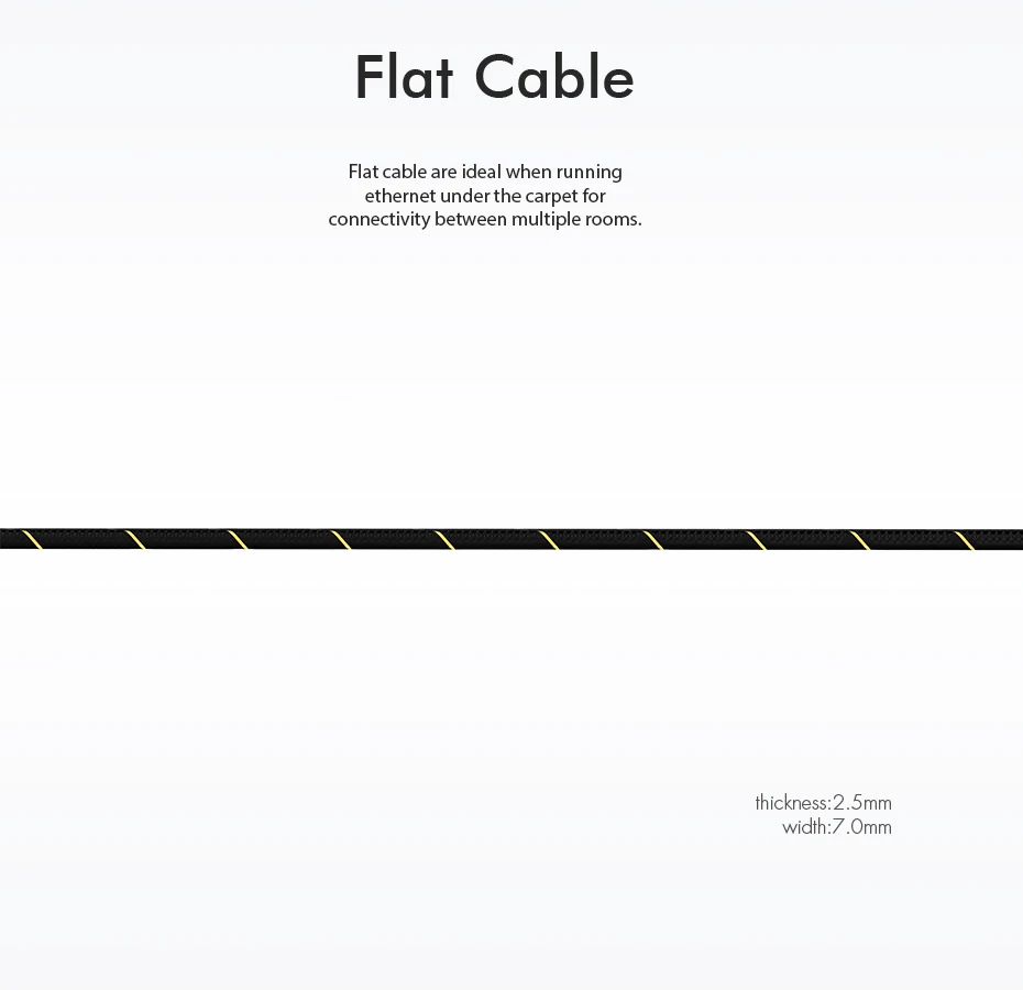 ★Diseño único de cable plano: código negro de cable con línea dorada, adecuado para usar en diferentes situaciones y es fácil de identificar. Diseño de cable plano para cableado doméstico fácil y conveniente. El alivio de tensión evita que el cable se rompa en esquinas estrechas