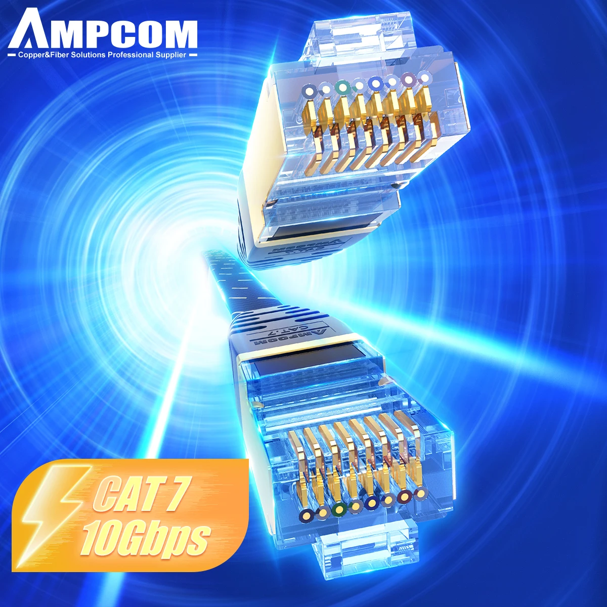 Comprar AMPCOM-Cable de red plano Delgado trenzado RJ45 Cat7/ 6A, Cable Lan STP RJ 45, Cable de parche Ethernet para computadora, enrutador, interruptor, PC