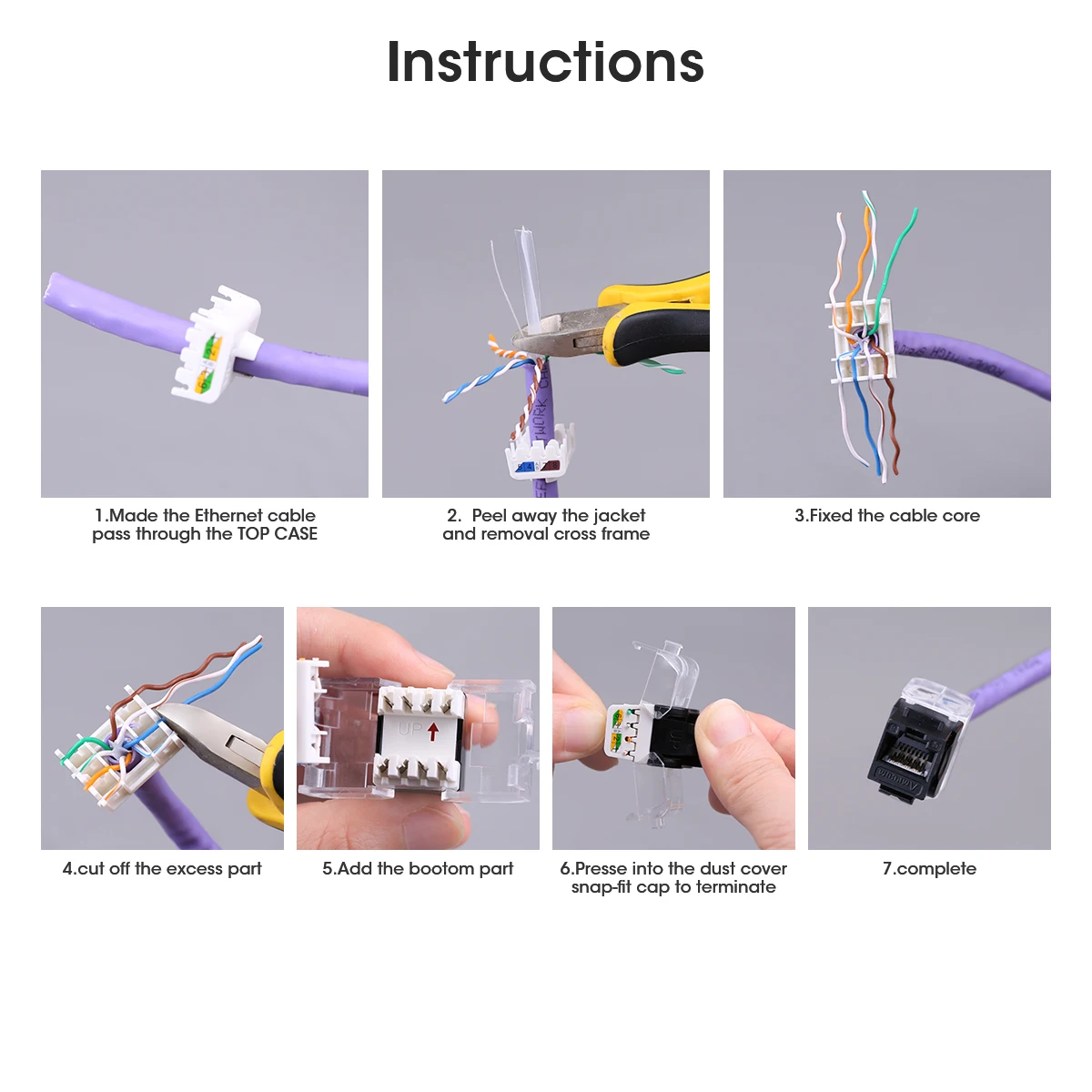 Comprar AMPCOM cat 6-conector Keystone RJ45 sin herramientas, CAT6a Cat5e, conector Keystone RJ45 UTP, sin acoplador de módulo de herramienta de perforación