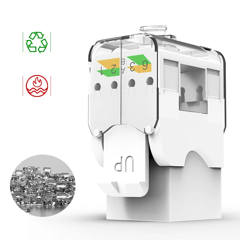 No se requiere ninguna herramienta de perforación, ya que los conductores de cable pueden ser terminados por una tapa de ajuste rápido de 180 grados que se presiona en su lugar. Es muy fácil de instalar y usar con este práctico Diagrama de separación de cables en la tapa.