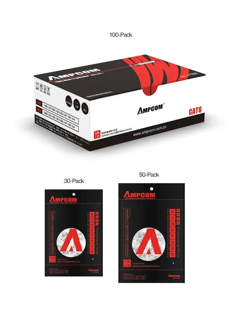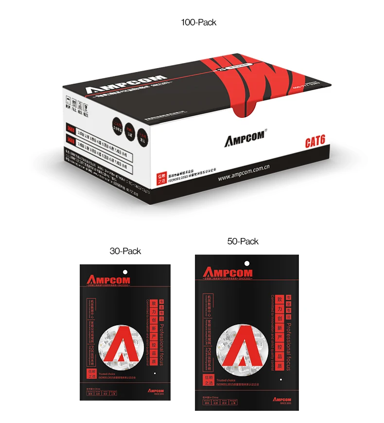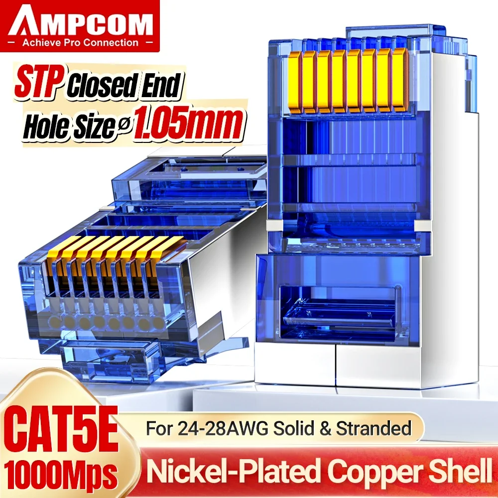 Comprar AMPCOM CAT5e conector de enchufe Modular RJ45 blindado, 8P8C, extremo de crimpado, Cable Ethernet, chapado en oro, 50U