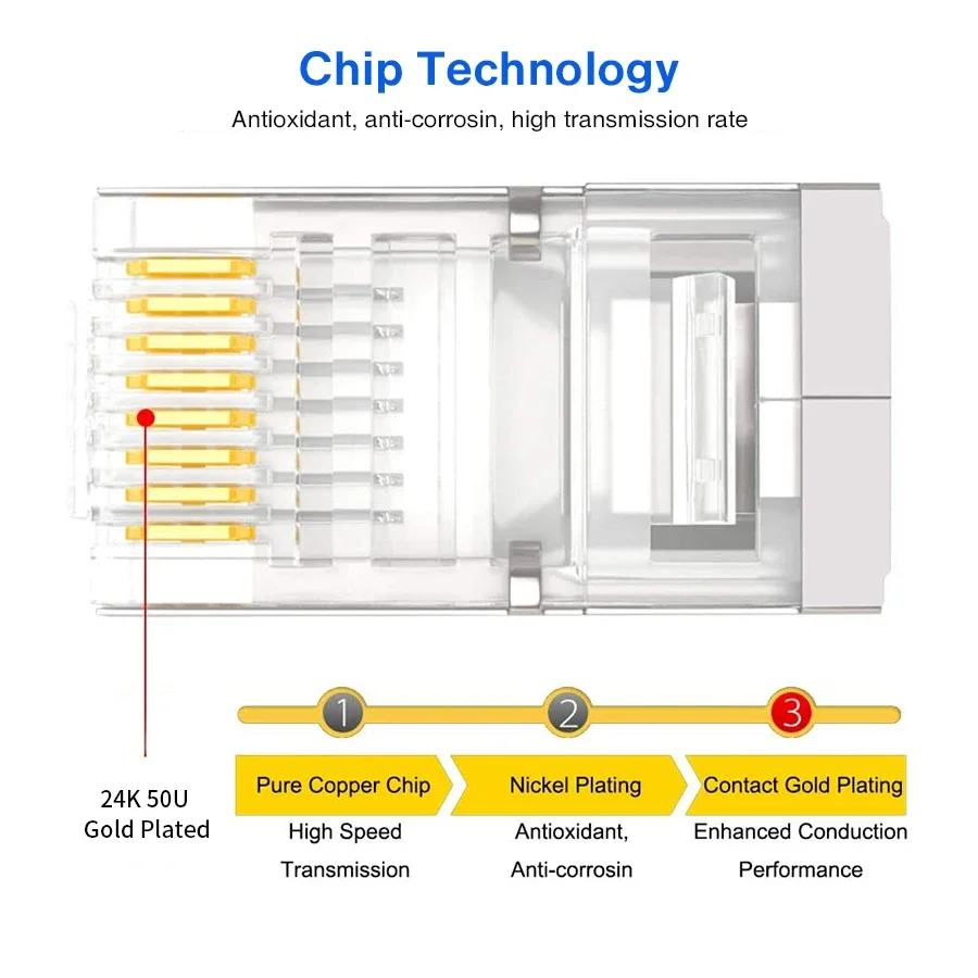 Los conectores de crimpado Shield RJ45 vienen con un mejor rendimiento de transmisión de datos y señal