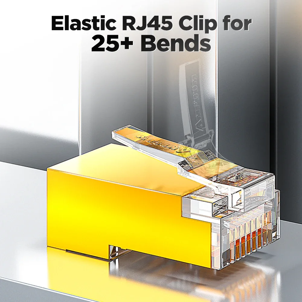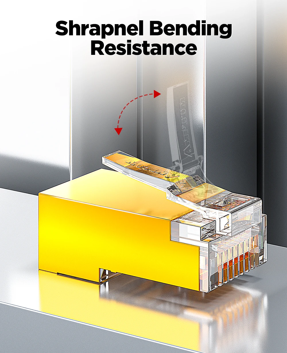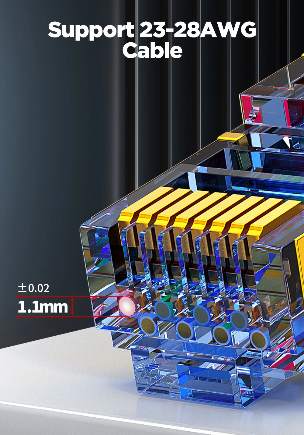 •Uso sin preocupaciones: los contactos chapados en oro de 50u mantienen una transmisión de datos superior y confiable al evitar que la corrosión dure con el tiempo; La carcasa de policarbonato transparente resistente a los impactos es duradera para el engarzado.El clip de bloqueo del conector se puede doblar muchas veces sin romperse.