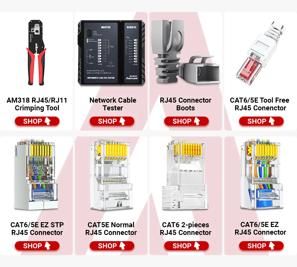Comprar AMPCOM CAT6 conector de clavija Modular RJ45 blindado 8P8C Cable Ethernet de extremo de engarzado conector Ethernet chapado en oro 50U