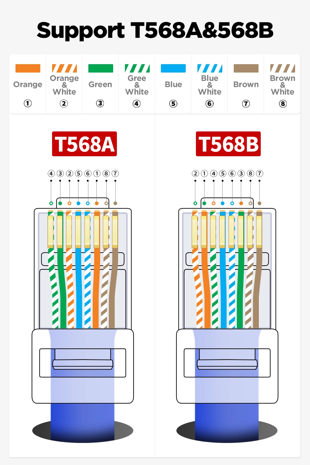 •Diseño efectivo: enchufe modular de una pieza diseñado para terminar cables Ethernet trenzados o sólidos de manera fácil y eficiente; Admite cables redondos o planos de 23 a 28 AWG con su diámetro exterior de hasta 0,25 pulgadas.