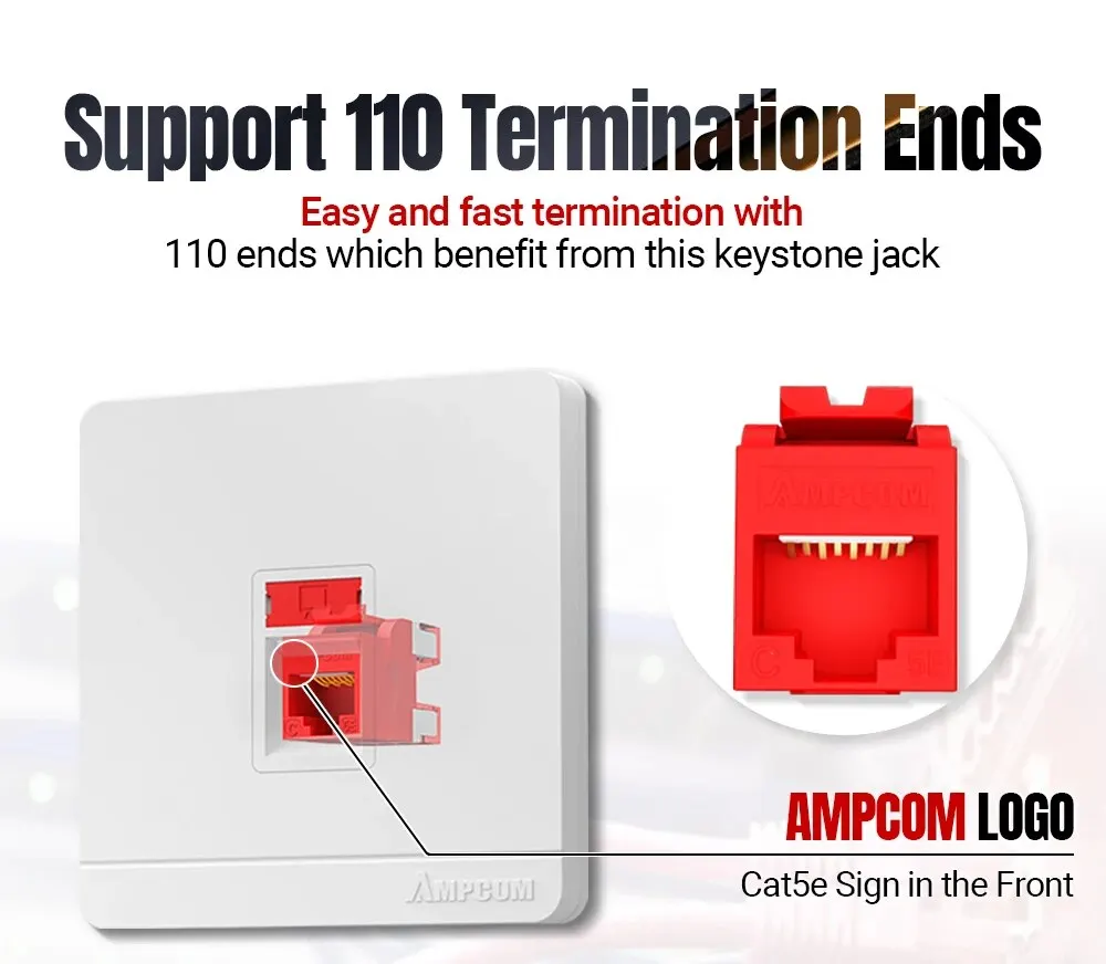 Admite cable CAT5E/6 estándarCompatible con cables conductores de cobre sólidos y trenzados de 23 a 26 AWG