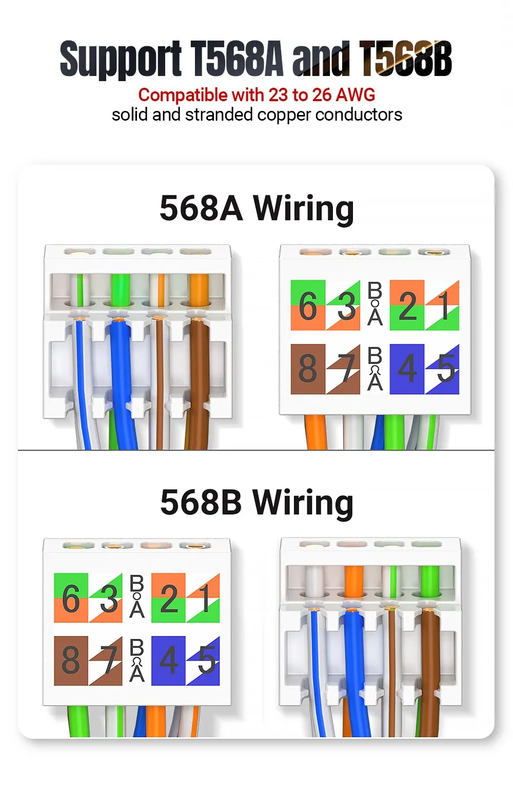 Compatible con esquemas de cableado T568A y T568B.