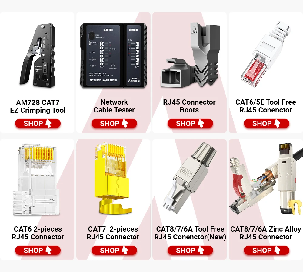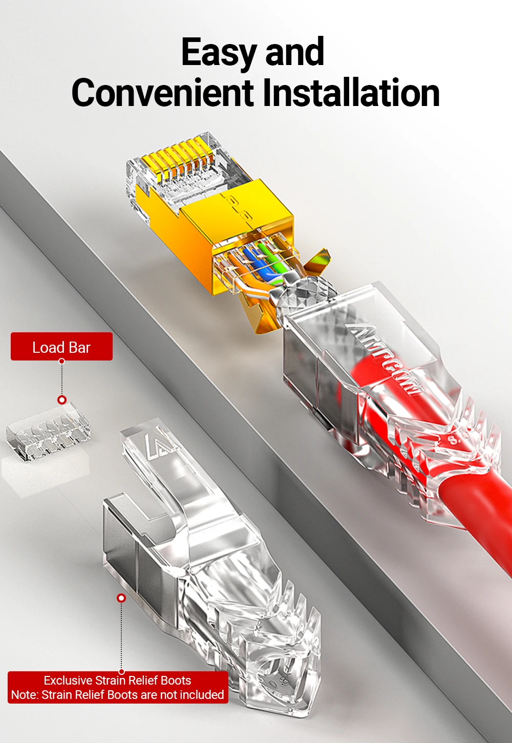 Comprar AMPCOM-conector CAT7 RJ45, Cable de red sólido o trenzado con barra de carga de 1,5mm, paso a través de CAT6A, rj 45, Ethernet