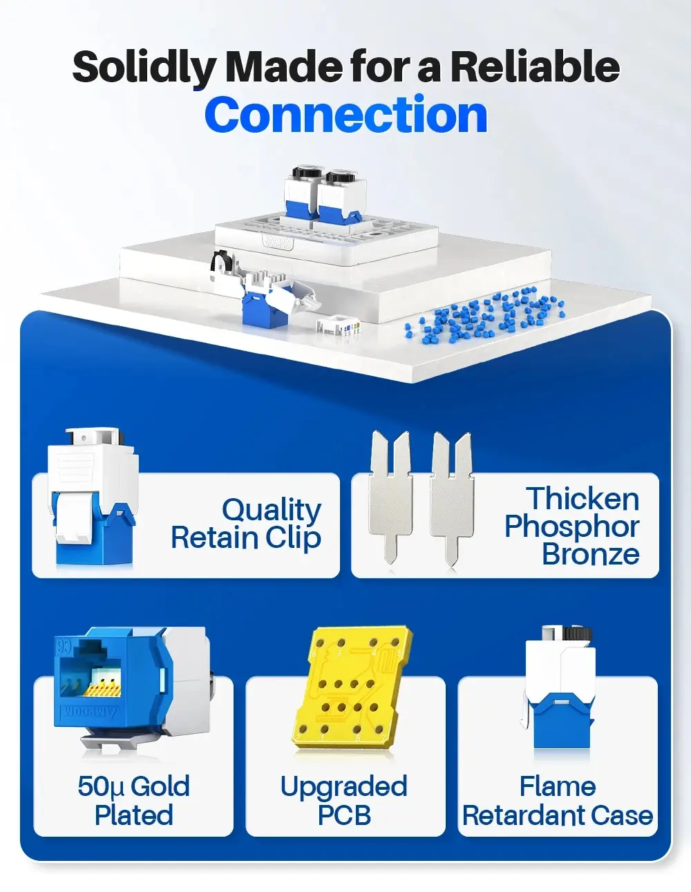 • Construcción duradera:Originario de China continental, la red RJ45 Keystone Jack de AMPCOM se jacta la construcción durable, asegurando funcionamiento y confiabilidad duraderos.