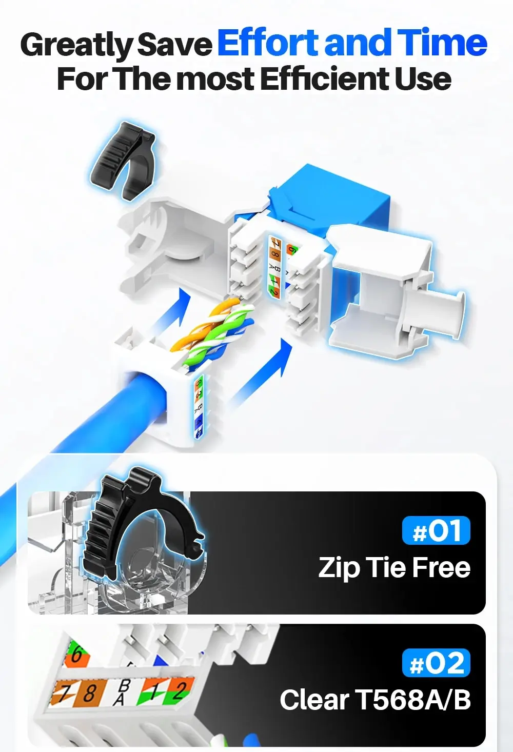 3. No hay necesidad de Punch Down Tool-Eliminación de herramientas Punch Down