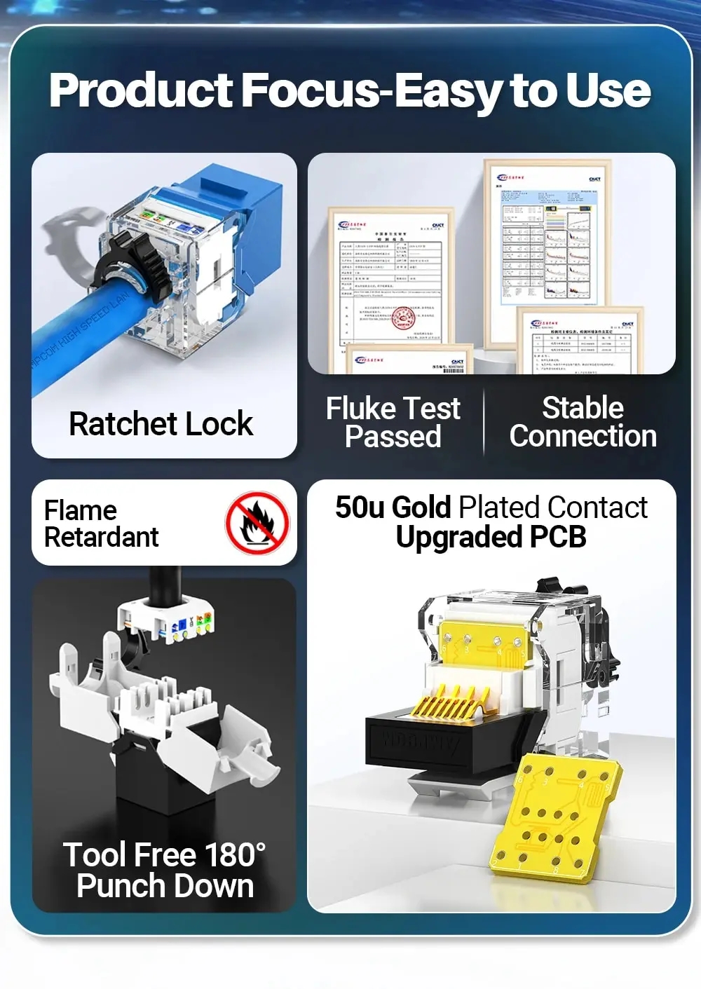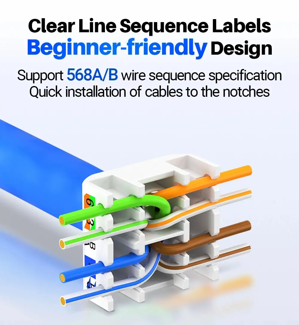 ✅El AMPCOM CAT6 / 6A RJ45 UTP Ethernet Keystone Jack es una solución de red de nivel profesional diseñada para una instalación fácil y eficiente, con un innovador diseño sin herramientas