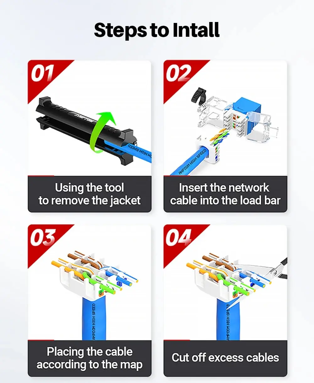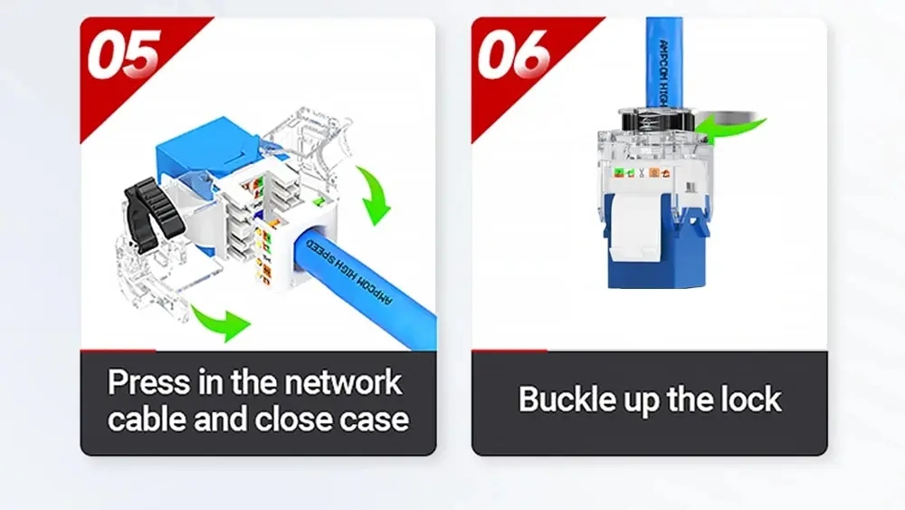 • Transmisión de datos de alta velocidad:Experimente la transferencia de datos rápida con RJ45 Keystone Jack de AMPCOM, que cuenta con una velocidad de datos LAN máxima de 1000Mbps. Ideal para el intercambio de datos de gran volumen.