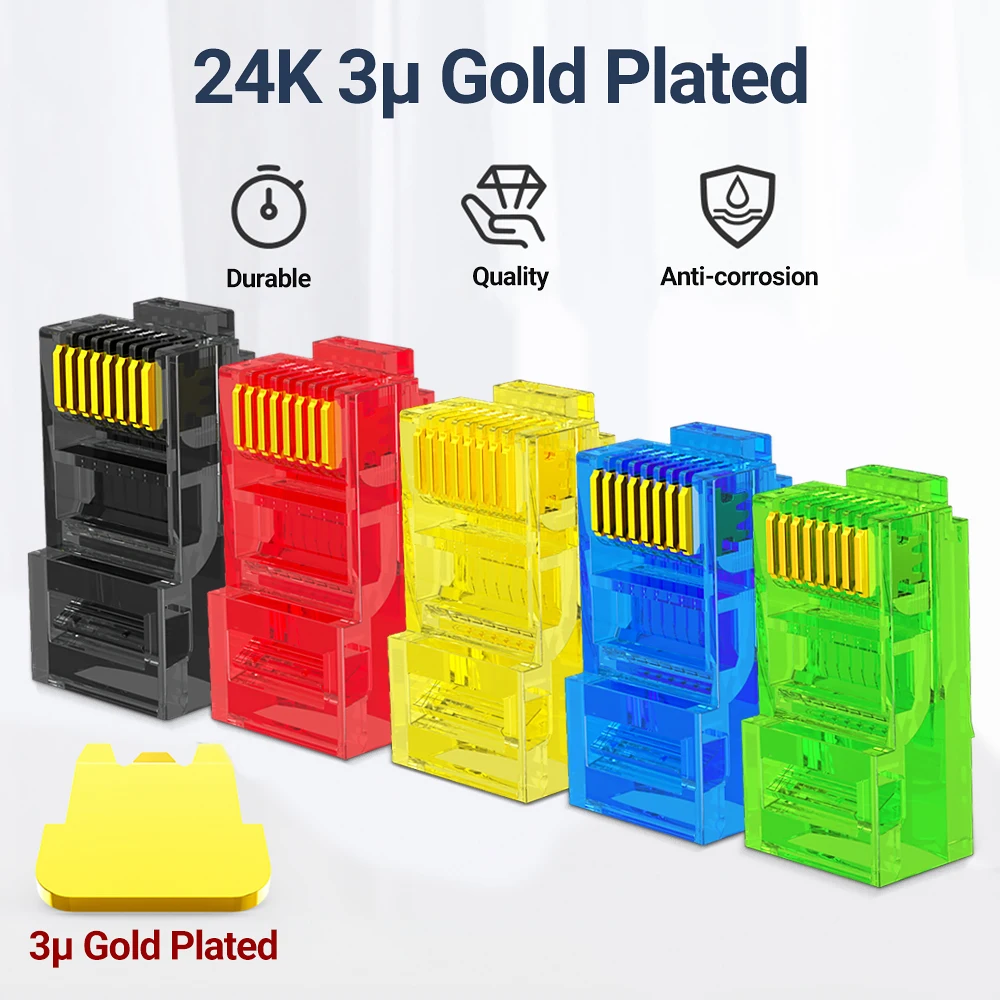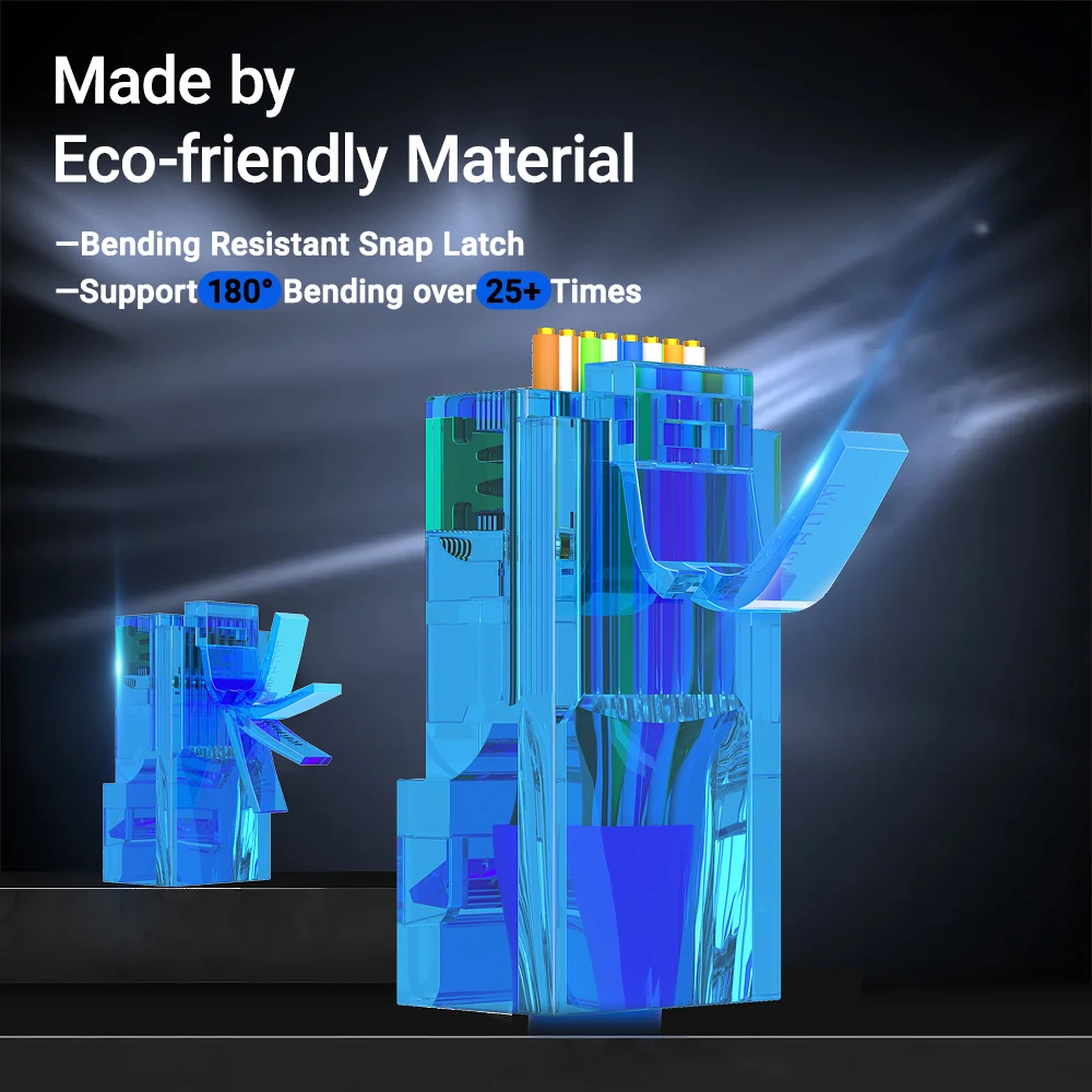 1. Rendimiento óptimo-Los conectores transparentes sin blindaje reducen la distancia entre los giros y los contactos del cable. Aseguran una conexión sólida para el mejor rendimiento que inhibe el ruido de frecuencia