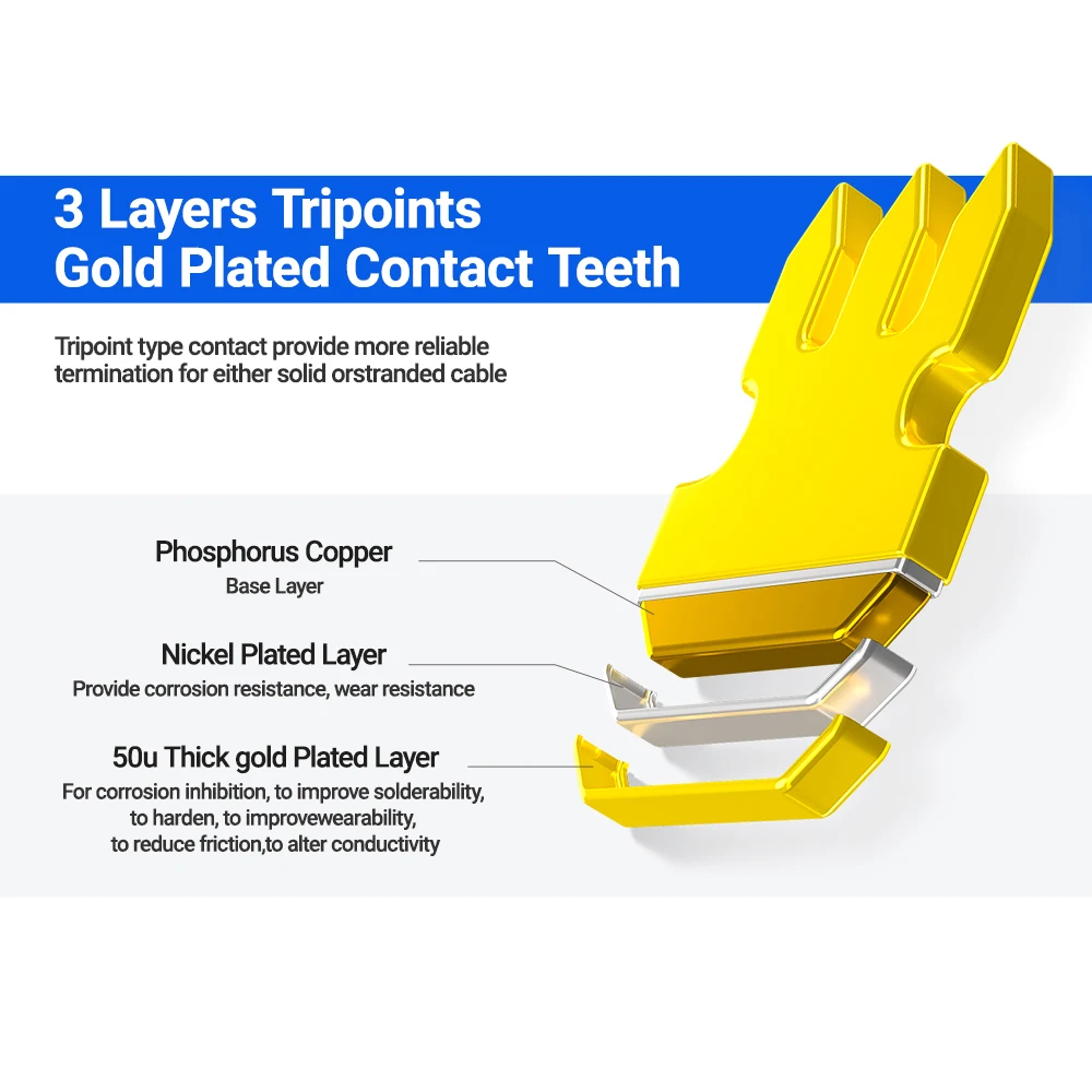 Dientes de contacto tripuntos chapados en oro de 3 capas