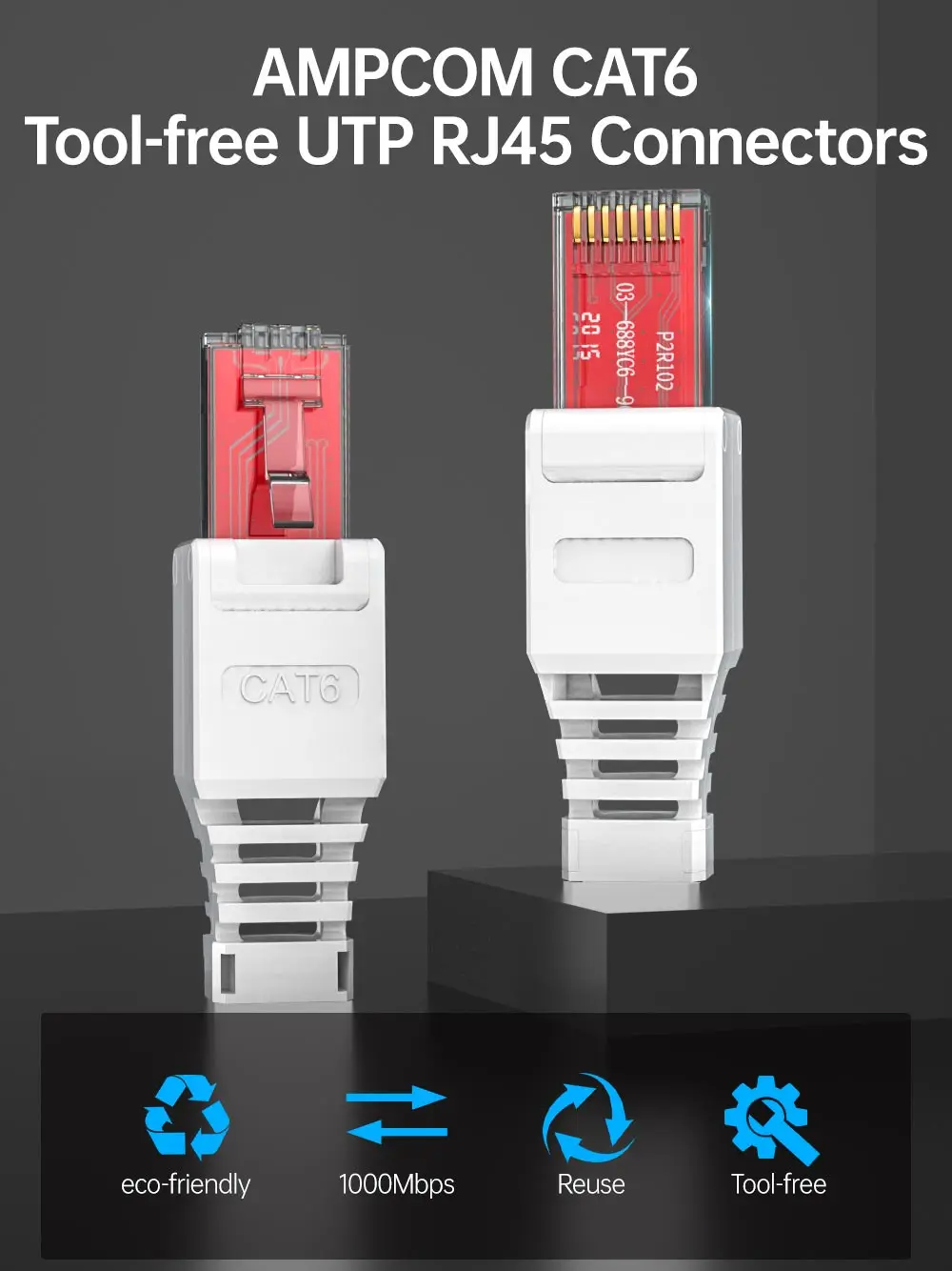 AMPCOM CAT6 Tool-free UTP RJ45 Connectors