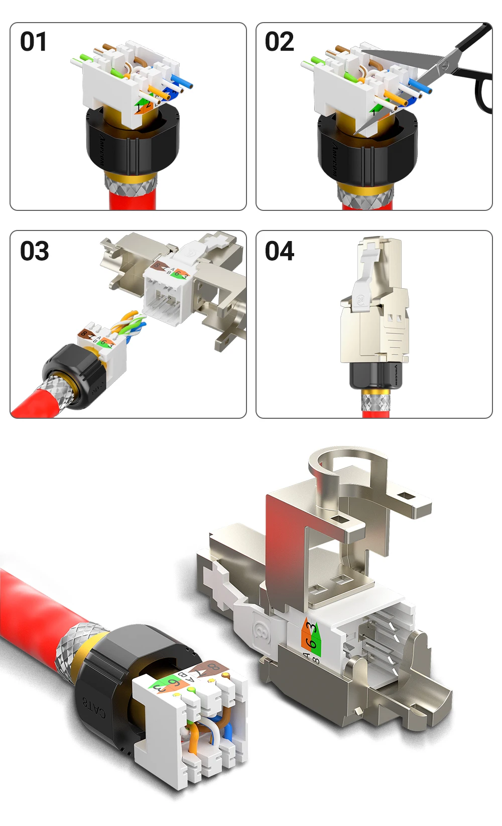 A diferencia del enchufe RJ45 normal que se vuelve inutilizable con errores de prensado, este admite múltiples instalaciones y se puede reutilizar hasta 20 veces.