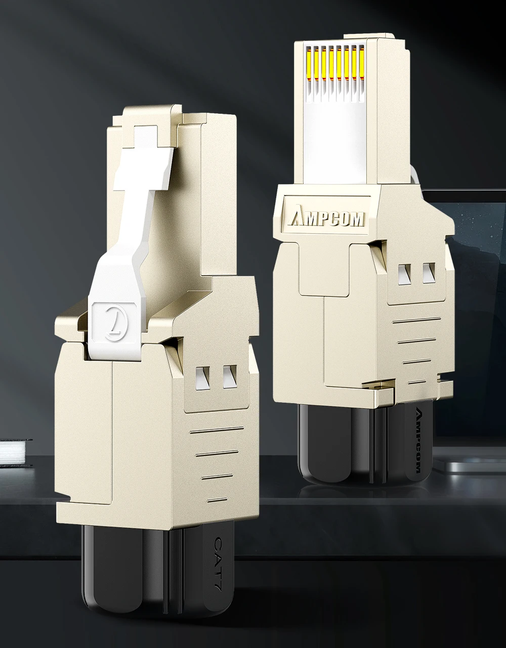 Comprar AMPCOM-conectores RJ45, conector Modular, Cat6, Cat6A, CAT7, CAT8, STP, red sin Toolless, enchufes Ethernet, Cable, herramienta de Internet gratis