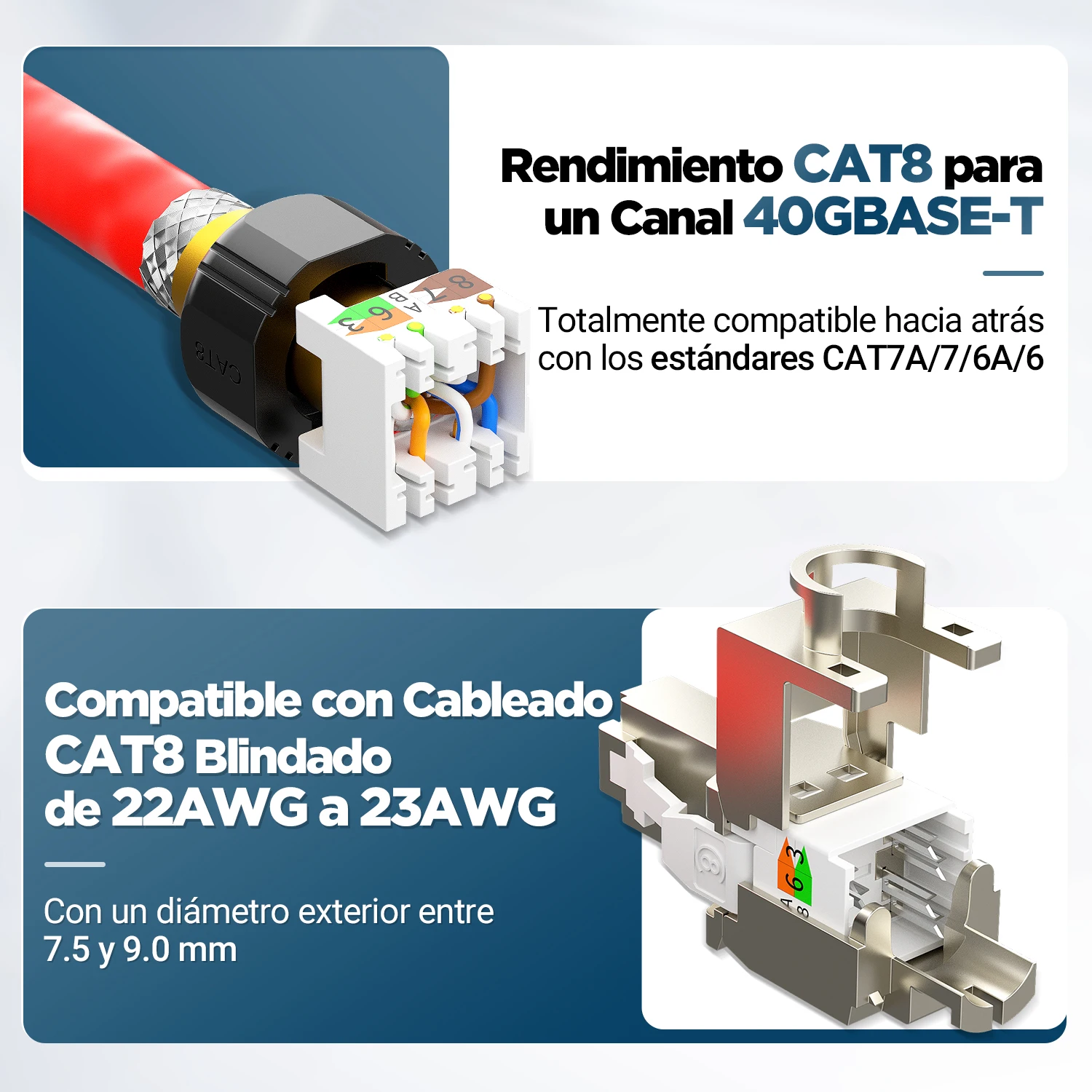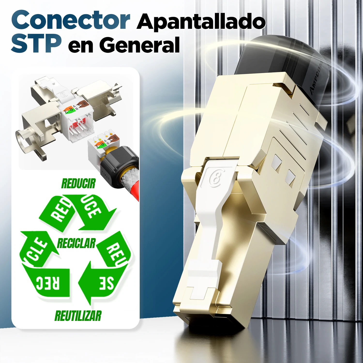 Enchufe de terminación de campo AMPCOM RJ45 STP para cable CAT6/ CAT6A/ CAT7/ Cat7A/ CAT8 STP