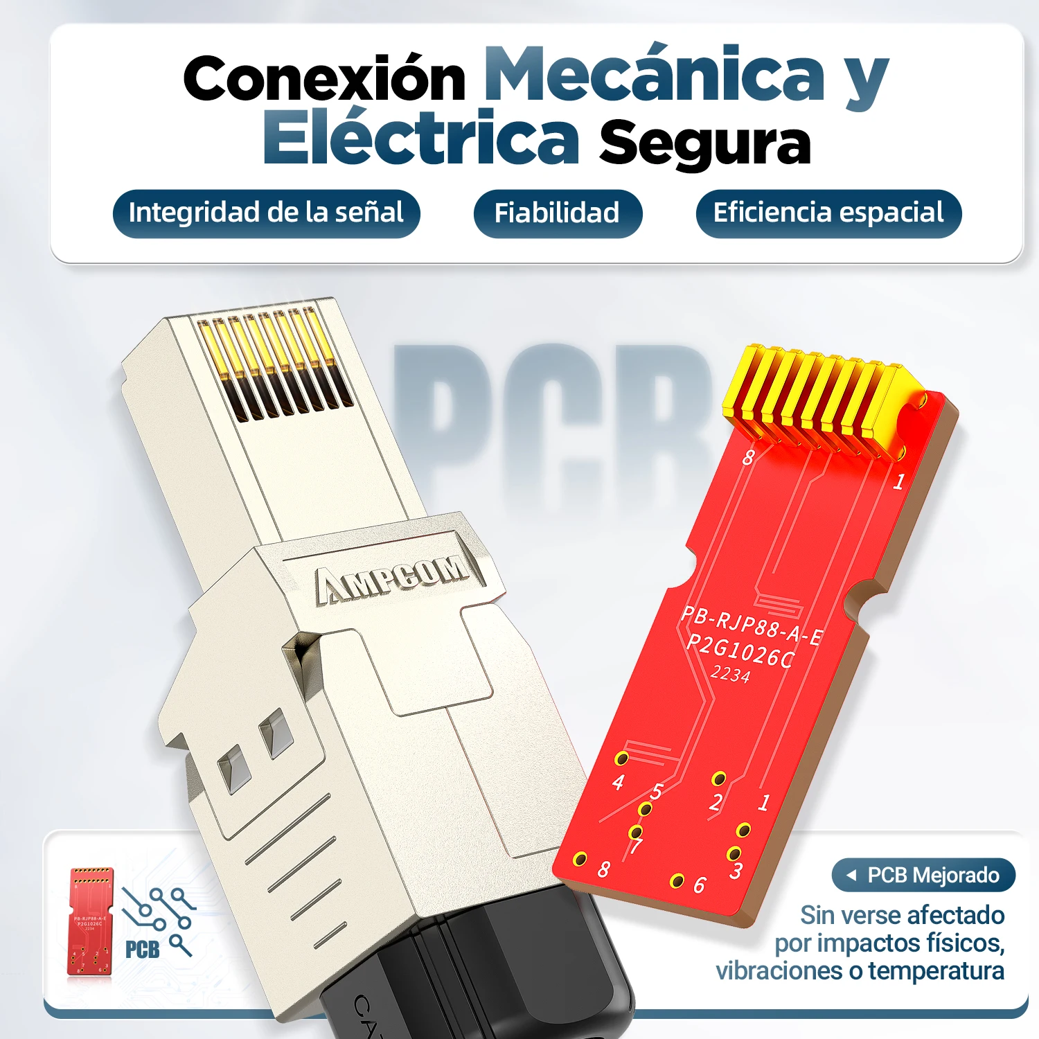 Comprar AMPCOM-conectores RJ45, conector Modular, Cat6, Cat6A, CAT7, CAT8, STP, red sin Toolless, enchufes Ethernet, Cable, herramienta de Internet gratis