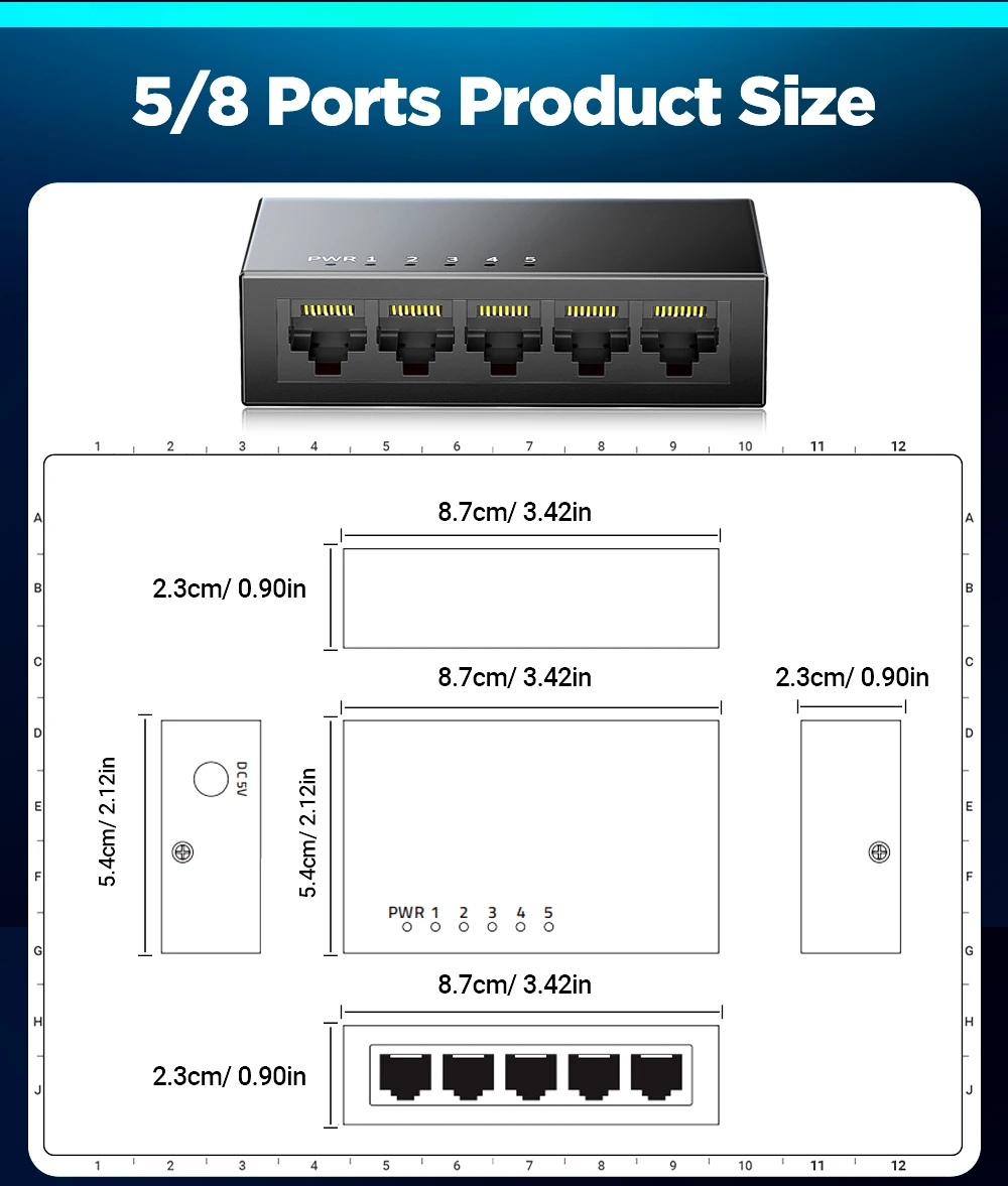 El5-El interruptor Ethernet inteligente Gigabit de Puerto adopta circuitos integrados de red de alta calidad y alta velocidad, y este producto resuelve completamente el problema del ruido de los interruptores pequeños en el entorno de la oficina a través del diseño silencioso sin ventilador. Este interruptor tiene5Puertos Gigabit RJ45, pueden proporcionar una conexión perfecta para Ethernet de 10/100/1000M, el producto puede ser ampliamente utilizado en videovigilancia de red de seguridad, hotel, Campus, ingeniería de red de pequeñas y medianas empresas y otras ocasiones.