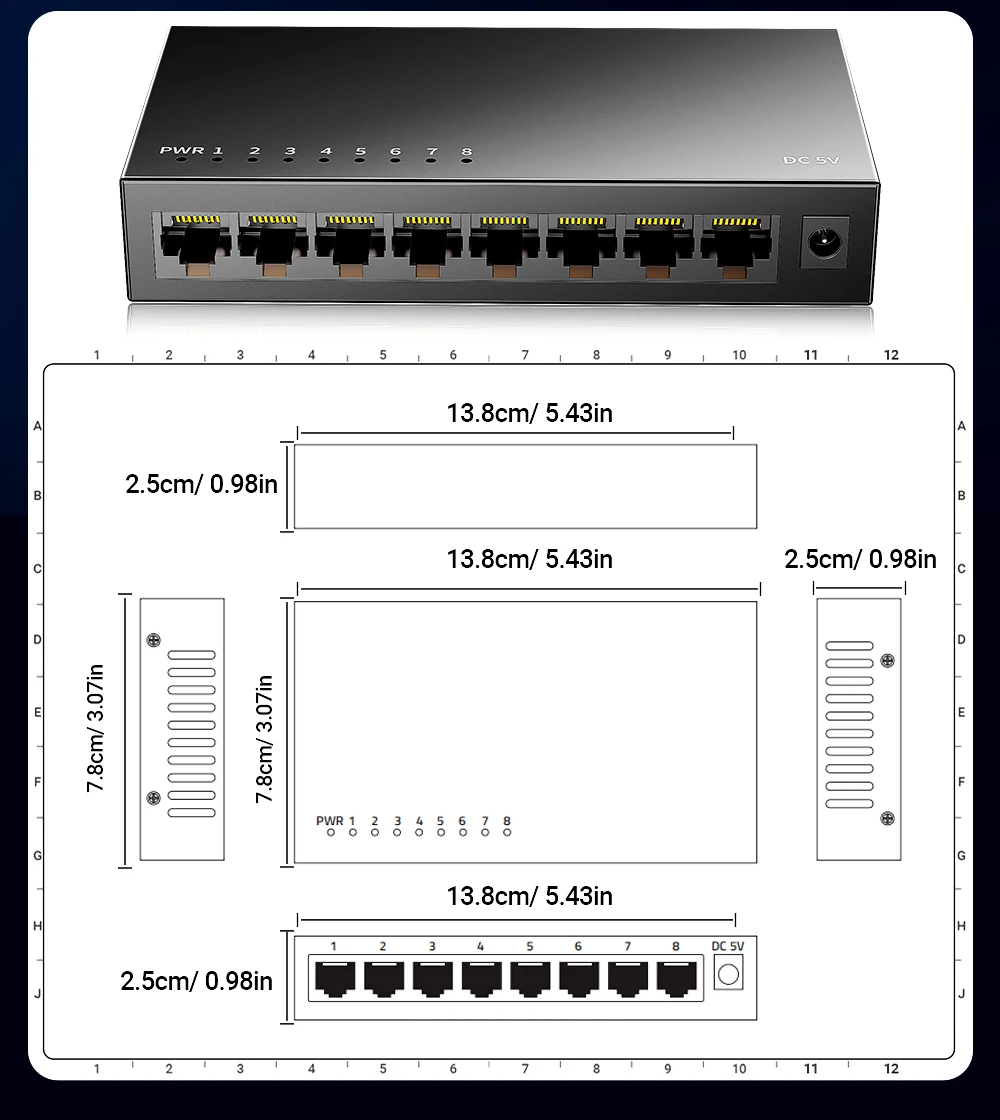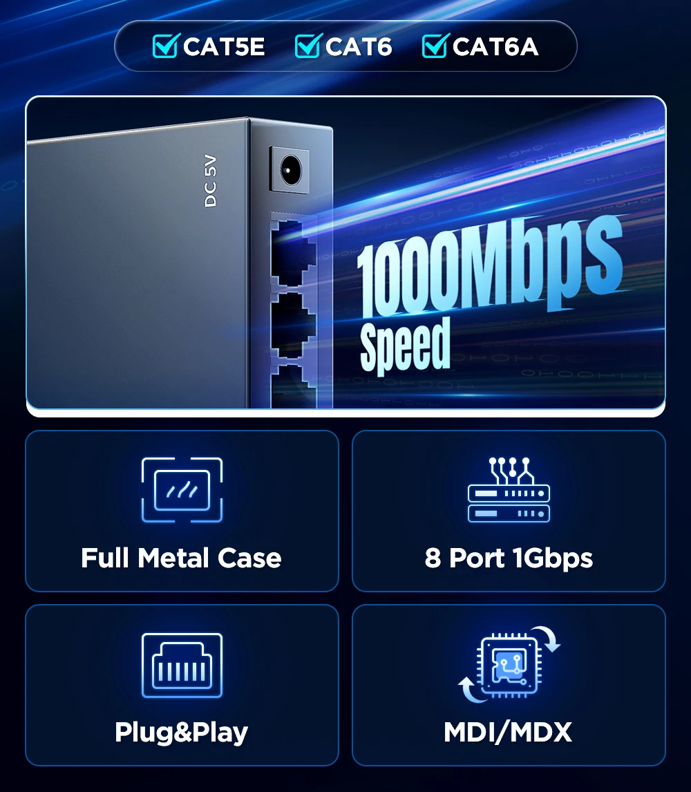 Caja metálica completa/8 puertos 1Gbps/Plug & Play/MDI/MDX