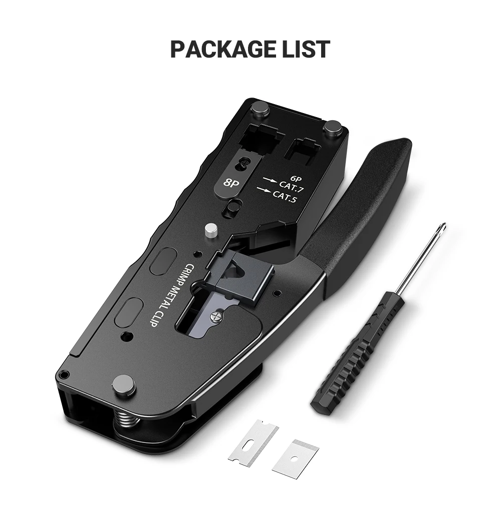 5. El paquete incluye: 1 crimpadora AMPCOM, 2 cuchillas de repuesto, 1 destornillador
