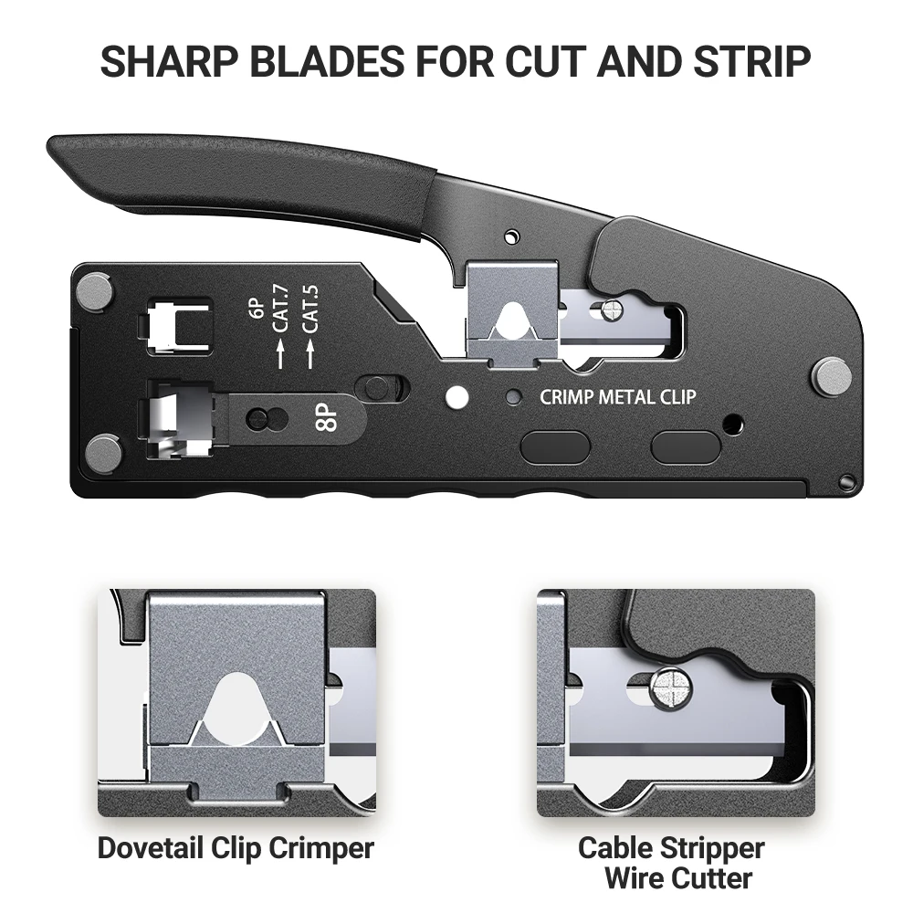 Crimpadora RJ45/RJ11 de paso CAT7 de 1 piezas