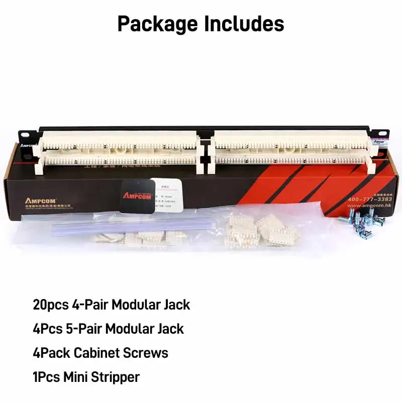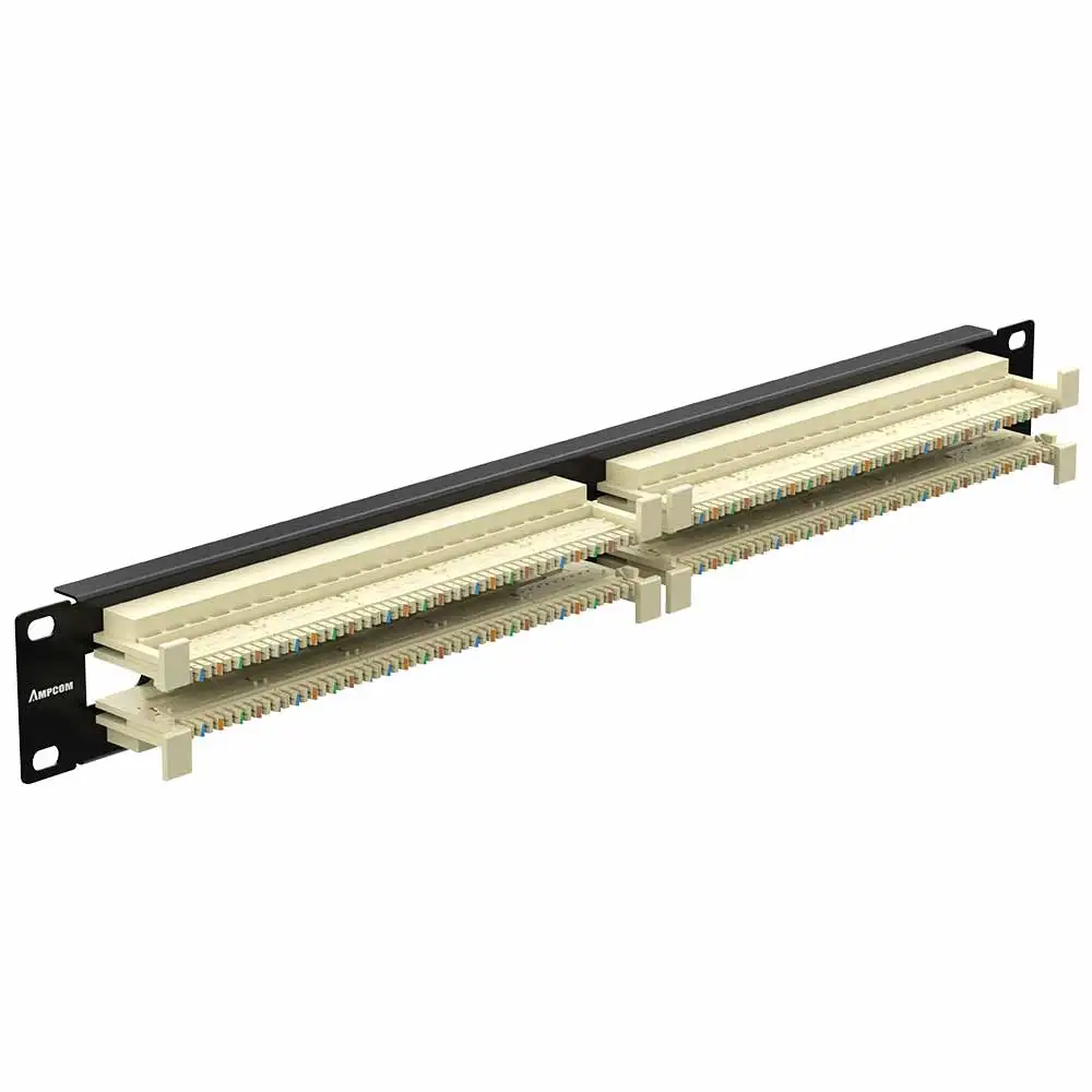 AMPCOM 1U rack 110 panel de conexión de voz 100 pares Módulo de voz RJ11 teléfono 19 pulgadas Marco de rack Terminal Snap-In interfaz