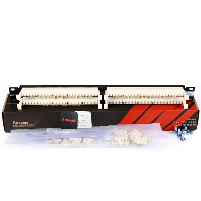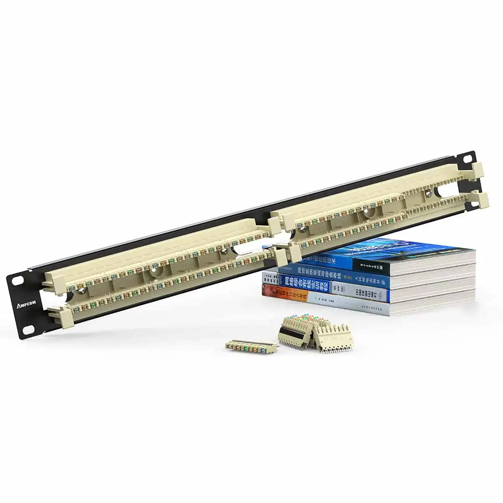 AMPCOM 1U rack 110 panel de conexión de voz 100 pares Módulo de voz RJ11 teléfono 19 pulgadas Marco de rack Terminal Snap-In interfaz