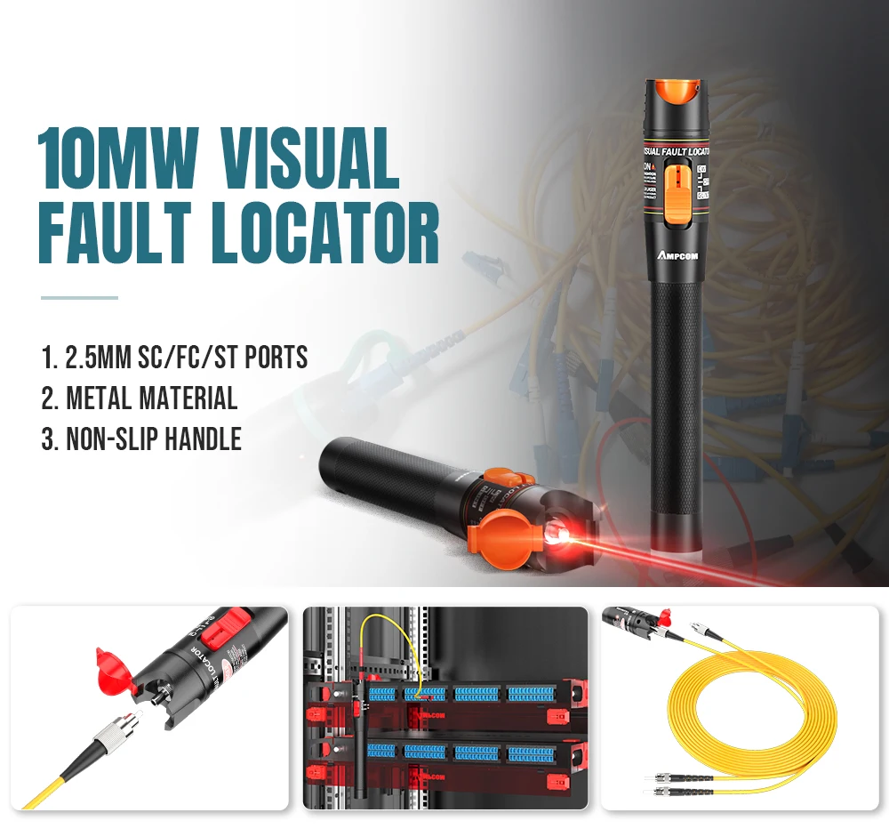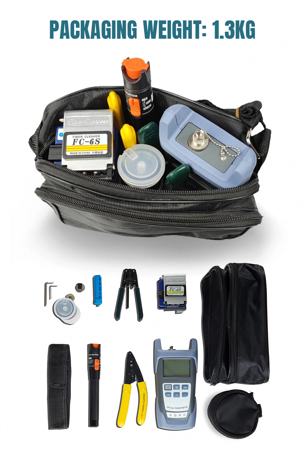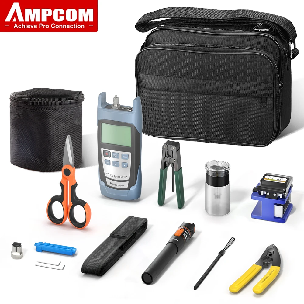Comprar AMPCOM FTTH Kit de herramientas de fibra óptica con cuchilla de fibra FC-6S localizador Visual de fallos medidor de potencia óptica herramienta de pelado de fibra 13 en 1