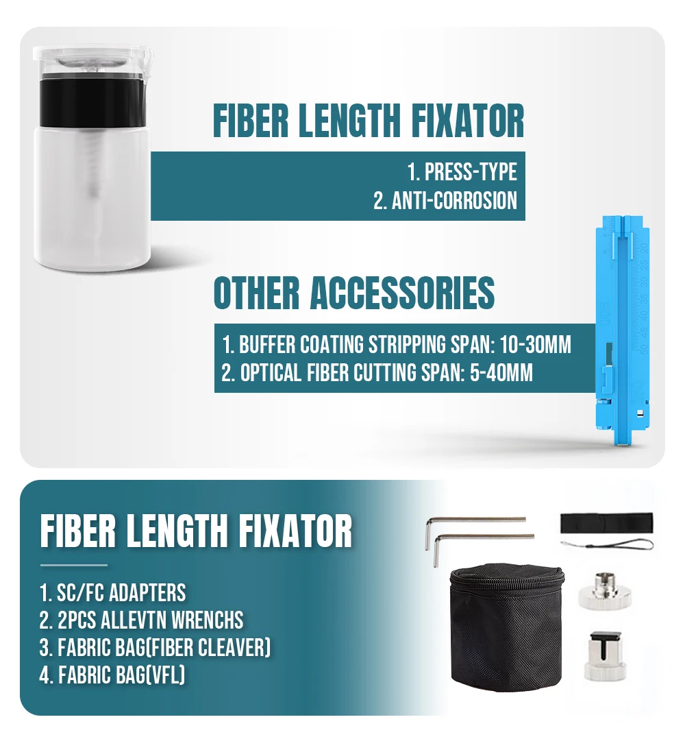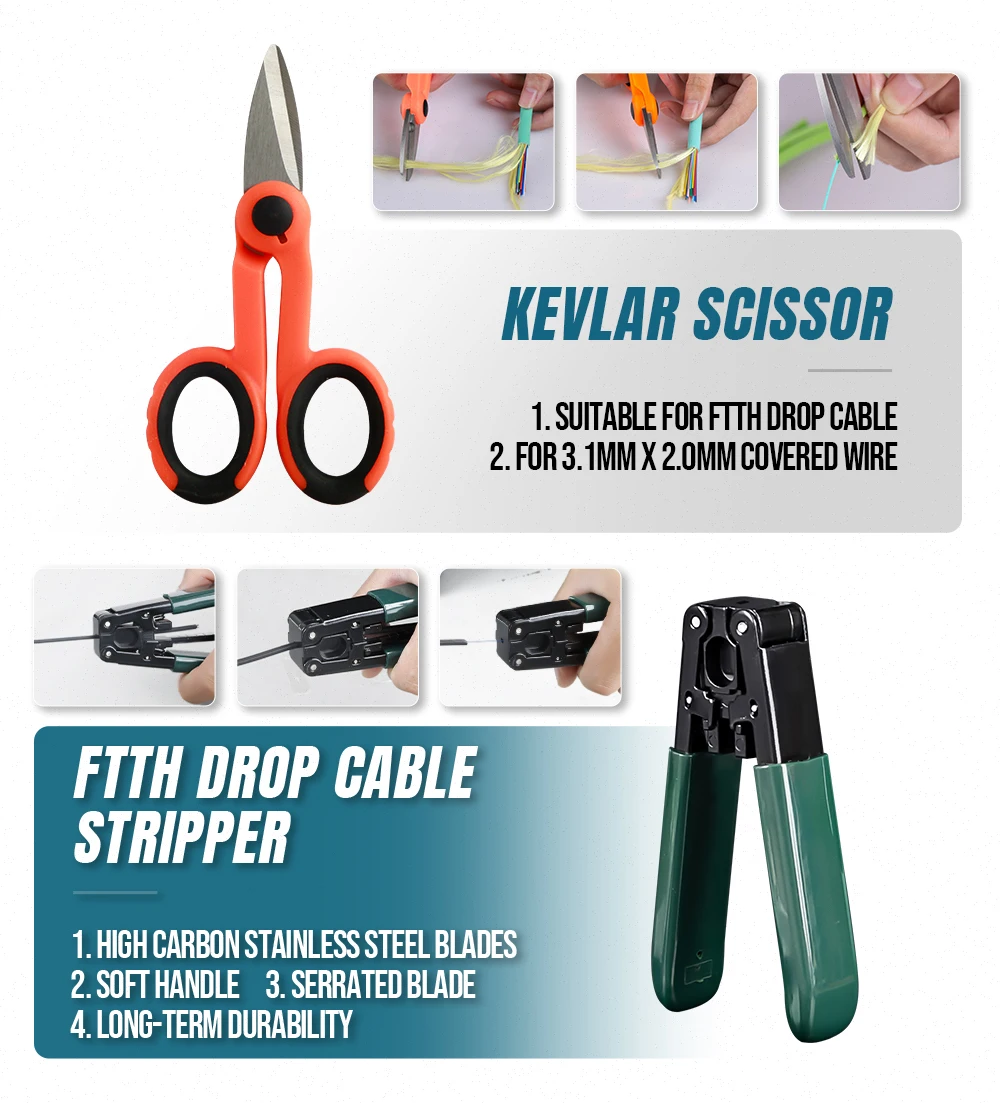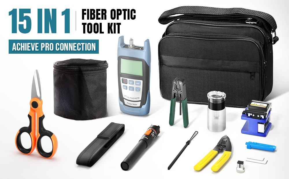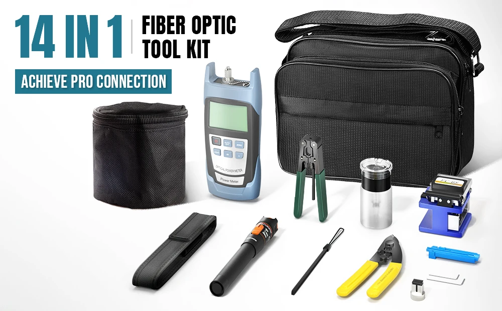 Comprar AMPCOM FTTH Kit de herramientas de fibra óptica con cuchilla de fibra FC-6S localizador Visual de fallos medidor de potencia óptica herramienta de pelado de fibra 13 en 1